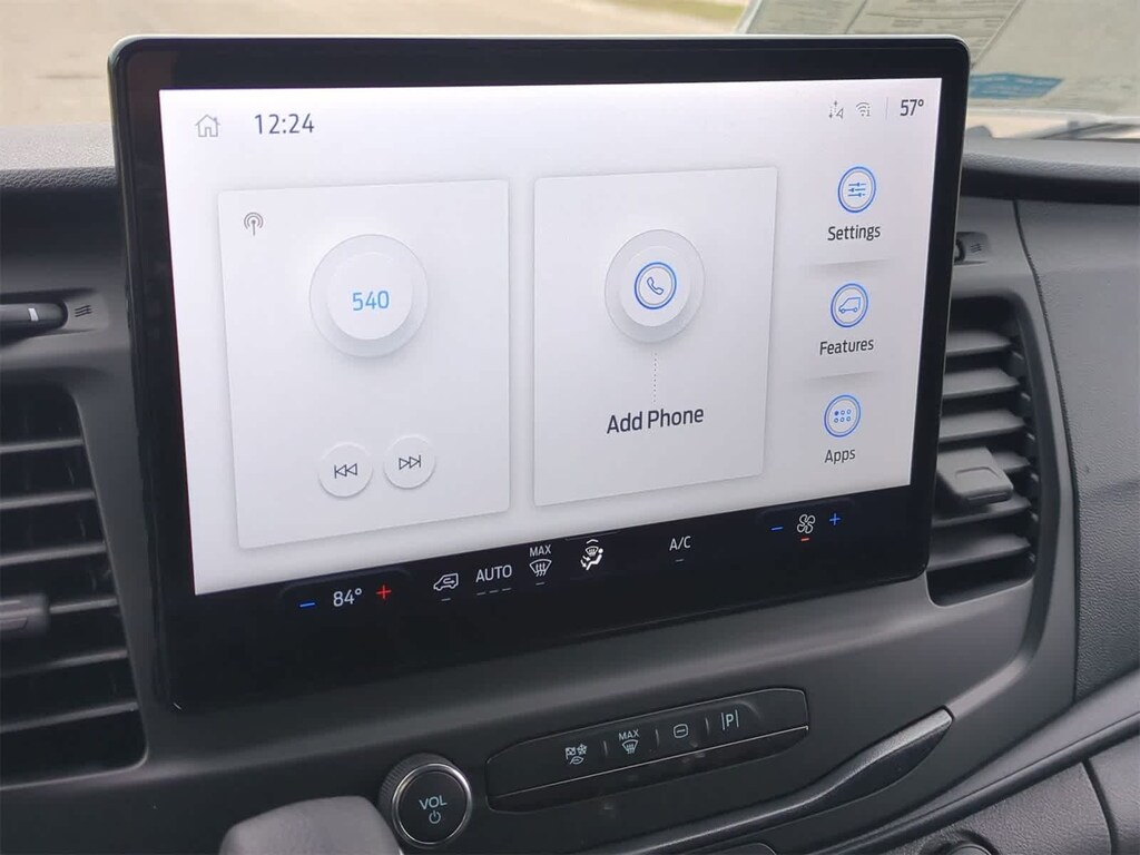 TRANSMISSION: 10-SPD AUTOMATIC W/OD & SELECTSHIFT auxiliary transmission oil cooler (STD). 2026 Ford Transit Cargo Van with Oxford White exterior and Dark Palazzo Gray interior features a V6 Cylinder Engine with 275 HP at 6250 RPM*.