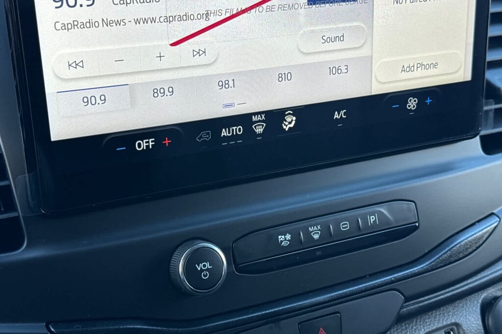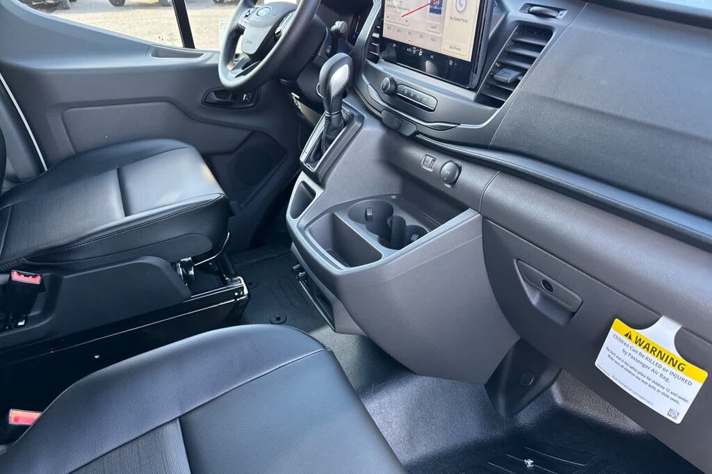 Navigation, Back-Up Camera, Flex Fuel, iPod/MP3 Input, Onboard Communications System. Ford Transit Cargo Van with Oxford White exterior and Dark Palazzo Gray interior features a V6 Cylinder Engine with 275 HP at 6250 RPM*.