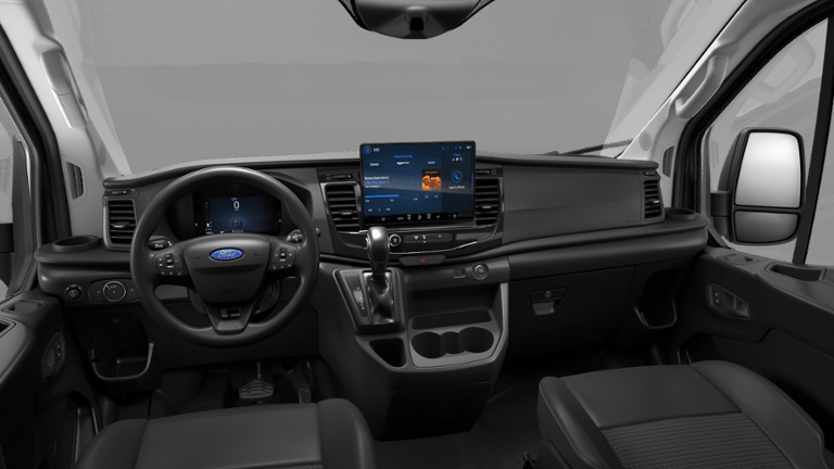 Navigation, Back-Up Camera, Flex Fuel, iPod/MP3 Input, Onboard Communications System Ford Transit Cargo Van with Oxford White exterior and Dark Palazzo Gray interior features a V6 Cylinder Engine with 275 HP at 6250 RPM*.