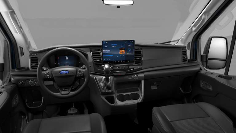 Navigation, All Wheel Drive, Back-Up Camera, Flex Fuel, iPod/MP3 Input, Onboard Communications System, Keyless Start, Lane Keeping Assist, WiFi Hotspot, Smart Device Integration, Apple CarPlay®. Ford Transit Cargo Van with Blue exterior and Dark Palazzo Gray interior features a V6 Cylinder Engine with 275 HP at 6250 RPM*.