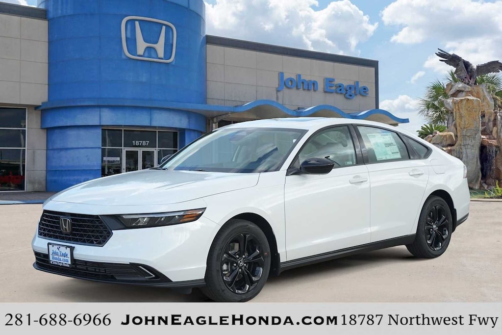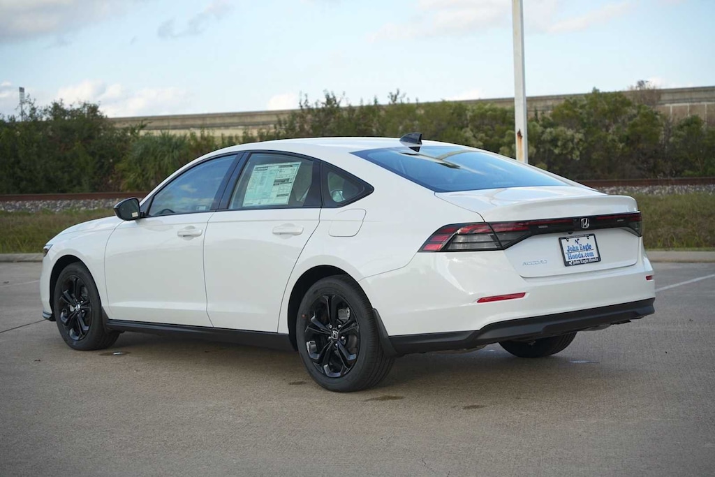 2025 Honda Accord SE Black Cloth, 4-Wheel Disc Brakes, 8 Speakers, ABS brakes, Adaptive Cruise Control: Adaptive Cruise Control (ACC) with Low-Speed Follow, Air Conditioning, Alloy wheels, AM/FM radio, Apple CarPlay/Android Auto, Auto High-beam Headlights, Automatic temperature control, Blind Spot Information (BSI) System warning, Brake assist, Bumpers: body-color, Compass, Delay-off headlights, Driver door bin, Driver vanity mirror, Dual front impact airbags, Dual front side impact airbags, Electronic Stability Control, Emergency communication system: HondaLink Assist, Exterior Parking Camera Rear, Fabric Seat Trim, Four wheel independent suspension, Front anti-roll bar, Front Bucket Seats, Front Center Armrest, Front dual zone A/C, Front reading lights, Fully automatic headlights, Heated door mirrors, Heated Front Bucket Seats, Heated front seats, Illuminated entry, Knee airbag, Lane departure: Lane Keeping Assist System (LKAS) active, Low tire pressure warning, Occupant sensing airbag, Outside temperature display, Overhead airbag, Overhead console, Panic alarm, Passenger door bin, Passenger vanity mirror, Power door mirrors, Power driver seat, Power moonroof, Power steering, Power windows, Radio data system, Radio: 180-Watt Audio System, Rear anti-roll bar, Rear reading lights, Rear seat center armrest, Rear side impact airbag, Rear window defroster, Remote keyless entry, Security system, Speed control, Speed-sensing steering, Speed-Sensitive Wipers, Split folding rear seat, Steering wheel mounted audio controls, Tachometer, Telescoping steering wheel, Tilt steering wheel, Traction control, Trip computer, Variably intermittent wipers, Wheels: 17 x 7.5J Berlina Black, Black Cloth. 29/37 City/Highway MPG