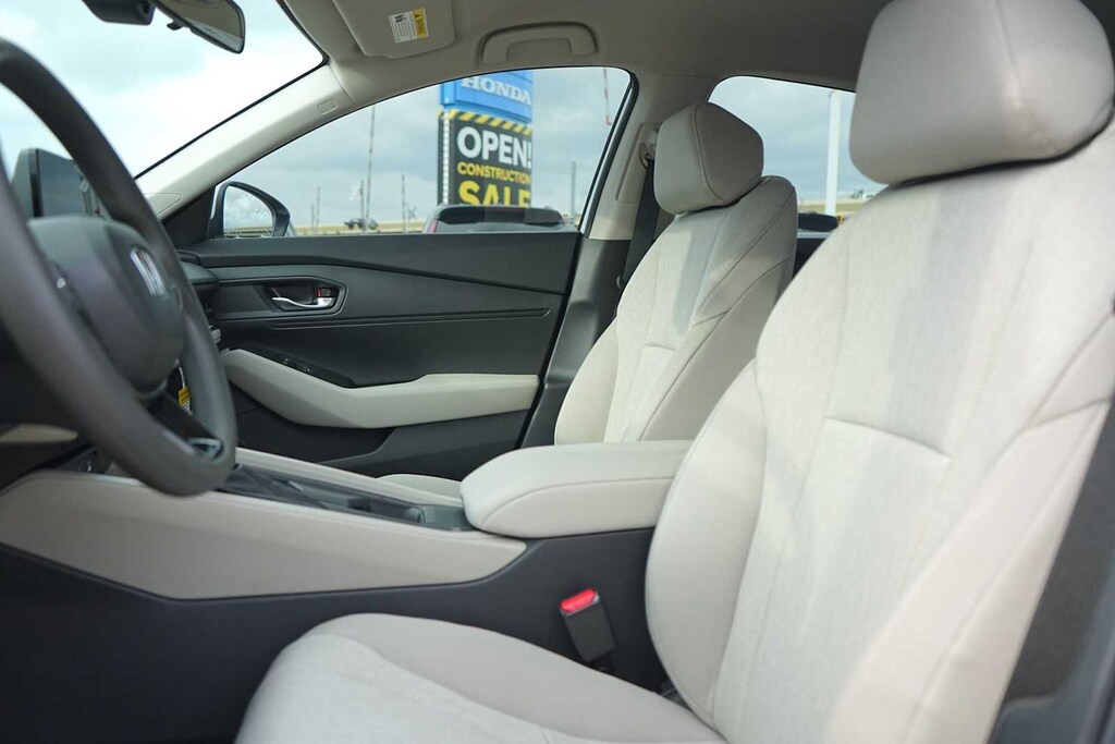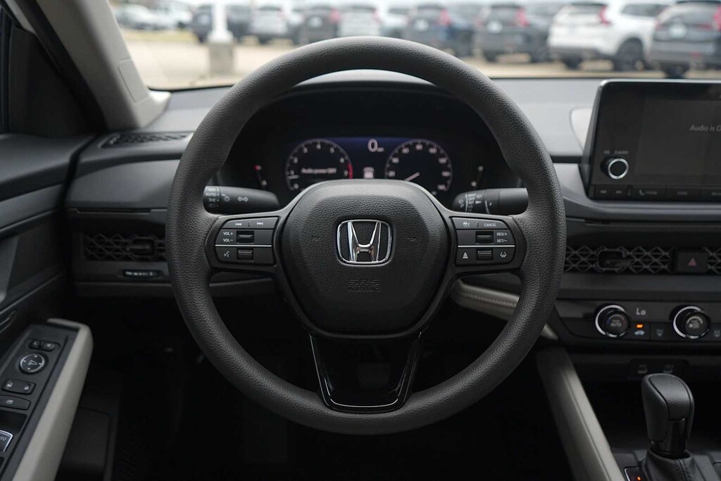 2025 Honda Accord LX Gray Cloth, 4 Speakers, 4-Wheel Disc Brakes, ABS brakes, Adaptive Cruise Control: Adaptive Cruise Control (ACC) with Low-Speed Follow, Air Conditioning, Alloy wheels, AM/FM radio, Apple CarPlay/Android Auto, Auto High-beam Headlights, Automatic temperature control, Brake assist, Bumpers: body-color, Compass, Delay-off headlights, Driver door bin, Driver vanity mirror, Dual front impact airbags, Dual front side impact airbags, Electronic Stability Control, Emergency communication system: HondaLink Assist, Exterior Parking Camera Rear, Fabric Seat Trim, Four wheel independent suspension, Front anti-roll bar, Front Bucket Seats, Front Center Armrest, Front reading lights, Fully automatic headlights, Illuminated entry, Knee airbag, Lane departure: Lane Keeping Assist System (LKAS) active, Low tire pressure warning, Occupant sensing airbag, Outside temperature display, Overhead airbag, Overhead console, Panic alarm, Passenger door bin, Passenger vanity mirror, Power door mirrors, Power steering, Power windows, Radio data system, Radio: 160-Watt Audio System, Rear anti-roll bar, Rear reading lights, Rear seat center armrest, Rear side impact airbag, Rear window defroster, Remote keyless entry, Security system, Speed control, Speed-sensing steering, Speed-Sensitive Wipers, Steering wheel mounted audio controls, Tachometer, Telescoping steering wheel, Tilt steering wheel, Traction control, Trip computer, Variably intermittent wipers, Wheels: 17 x 7.5J Blade Silver, Gray Cloth. 29/37 City/Highway MPG