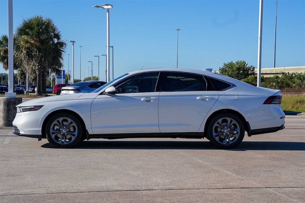 2025 Honda Accord Hybrid EX-L 2.0L I4 DOHC 16V, 4-Wheel Disc Brakes, 8 Speakers, ABS brakes, Adaptive Cruise Control: Adaptive Cruise Control (ACC) with Low-Speed Follow, Air Conditioning, Alloy wheels, AM/FM radio, Apple CarPlay/Android Auto, Auto High-beam Headlights, Auto-dimming Rear-View mirror, Automatic temperature control, Blind Spot Information (BSI) System warning, Brake assist, Bumpers: body-color, Compass, Delay-off headlights, Driver door bin, Driver vanity mirror, Dual front impact airbags, Dual front side impact airbags, Electronic Stability Control, Emergency communication system: HondaLink, Exterior Parking Camera Rear, Four wheel independent suspension, Front anti-roll bar, Front Bucket Seats, Front Center Armrest, Front dual zone A/C, Front reading lights, Fully automatic headlights, Heated door mirrors, Heated Front Bucket Seats, Heated front seats, Illuminated entry, Knee airbag, Lane departure: Lane Keeping Assist System (LKAS) active, Leather Shift Knob, Leather steering wheel, Leather-Trimmed Seat Trim, Low tire pressure warning, Memory seat, Occupant sensing airbag, Outside temperature display, Overhead airbag, Overhead console, Panic alarm, Passenger door bin, Passenger vanity mirror, Power door mirrors, Power driver seat, Power moonroof, Power passenger seat, Power steering, Power windows, Radio data system, Radio: 180-Watt Audio System, Rear anti-roll bar, Rear reading lights, Rear seat center armrest, Rear side impact airbag, Rear window defroster, Remote keyless entry, Security system, Speed control, Speed-sensing steering, Speed-Sensitive Wipers, Split folding rear seat, Steering wheel mounted audio controls, Telescoping steering wheel, Tilt steering wheel, Traction control, Trip computer, Turn signal indicator mirrors, Variably intermittent wipers, Wheels: 17 x 7.5J Pewter Gray, 2.0L I4 DOHC 16V. 51/44 City/Highway MPG
