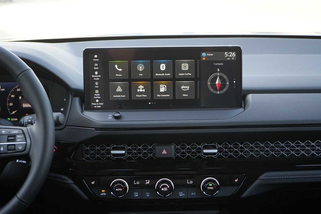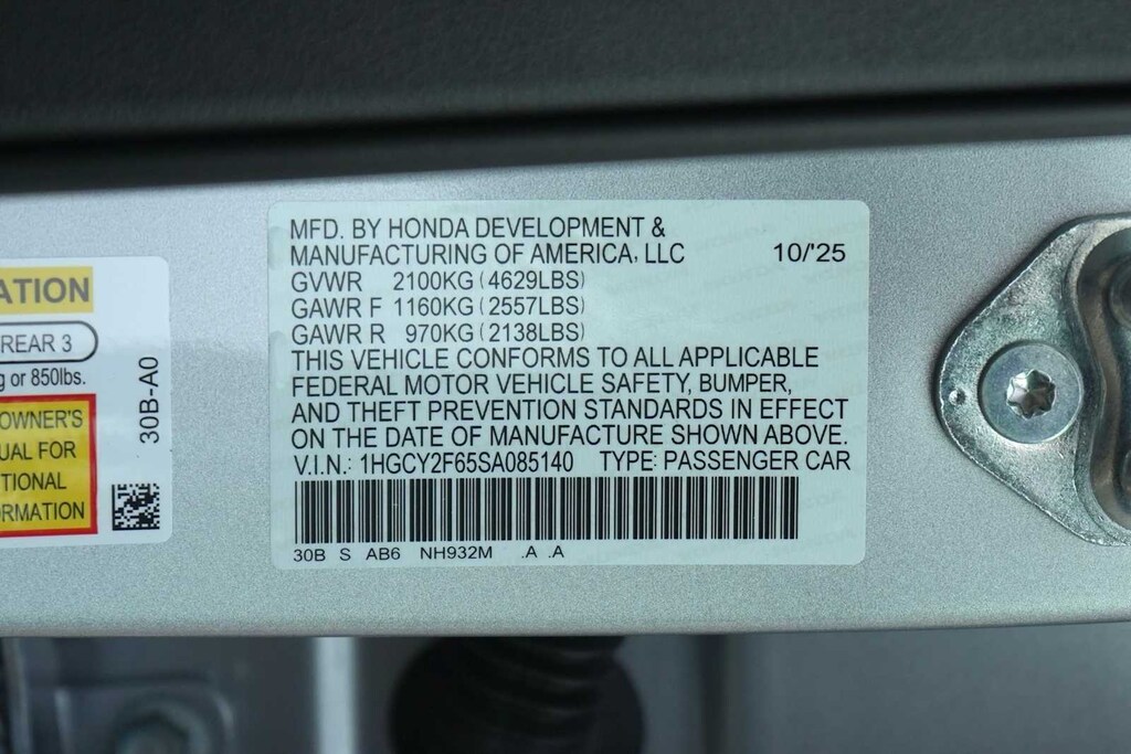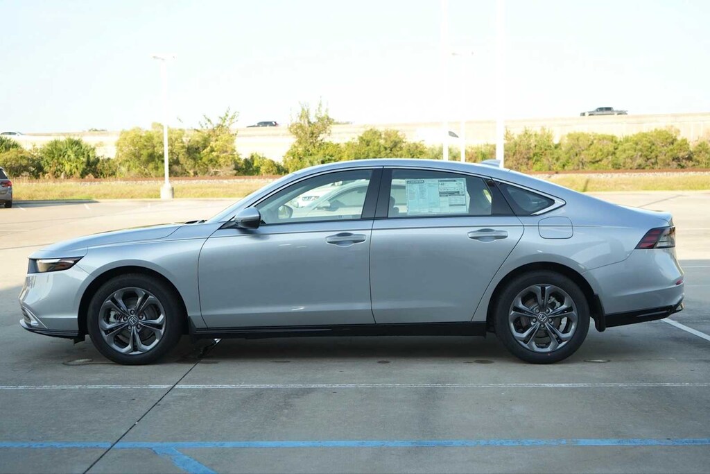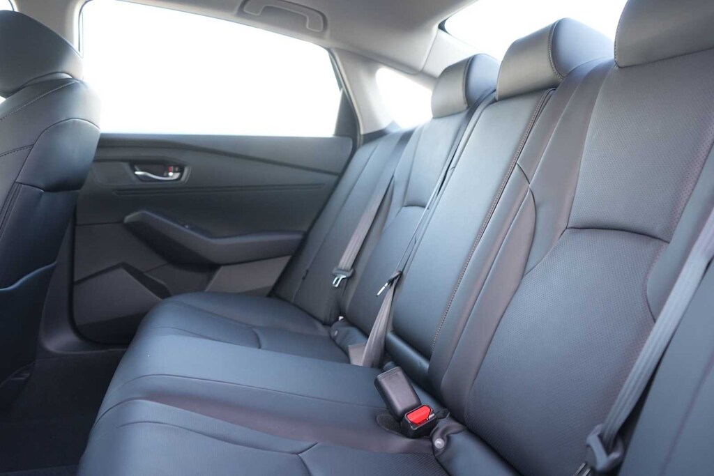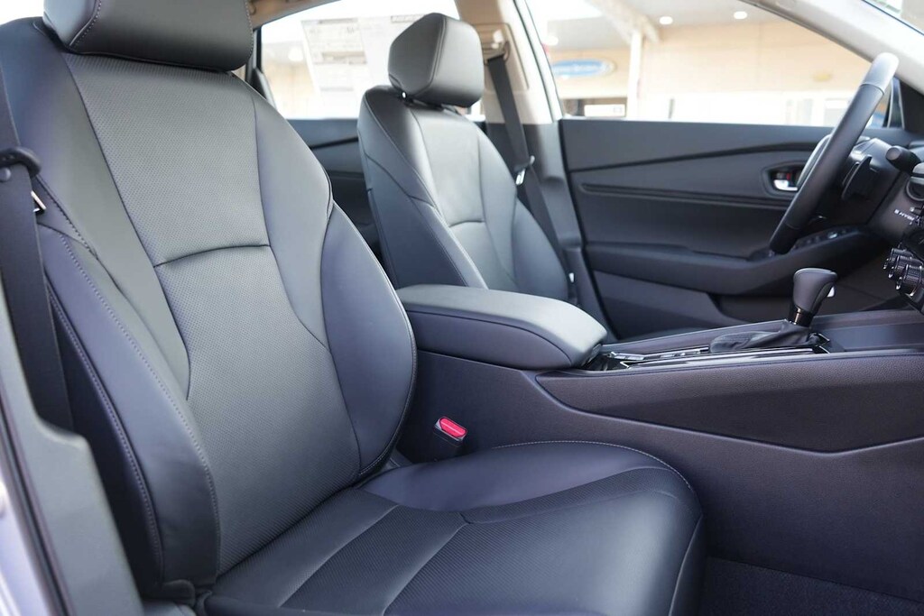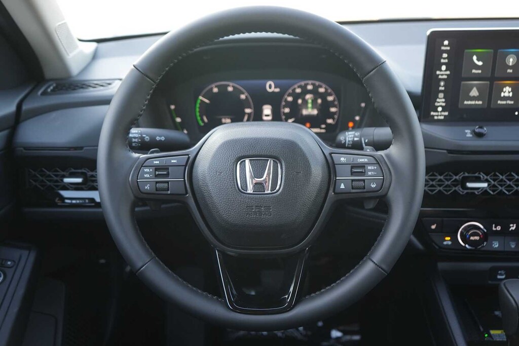 2025 Honda Accord Hybrid EX-L 2.0L I4 DOHC 16V, 4-Wheel Disc Brakes, 8 Speakers, ABS brakes, Adaptive Cruise Control: Adaptive Cruise Control (ACC) with Low-Speed Follow, Air Conditioning, Alloy wheels, AM/FM radio, Apple CarPlay/Android Auto, Auto High-beam Headlights, Auto-dimming Rear-View mirror, Automatic temperature control, Blind Spot Information (BSI) System warning, Brake assist, Bumpers: body-color, Compass, Delay-off headlights, Driver door bin, Driver vanity mirror, Dual front impact airbags, Dual front side impact airbags, Electronic Stability Control, Emergency communication system: HondaLink, Exterior Parking Camera Rear, Four wheel independent suspension, Front anti-roll bar, Front Bucket Seats, Front Center Armrest, Front dual zone A/C, Front reading lights, Fully automatic headlights, Heated door mirrors, Heated Front Bucket Seats, Heated front seats, Illuminated entry, Knee airbag, Lane departure: Lane Keeping Assist System (LKAS) active, Leather Shift Knob, Leather steering wheel, Leather-Trimmed Seat Trim, Low tire pressure warning, Memory seat, Occupant sensing airbag, Outside temperature display, Overhead airbag, Overhead console, Panic alarm, Passenger door bin, Passenger vanity mirror, Power door mirrors, Power driver seat, Power moonroof, Power passenger seat, Power steering, Power windows, Radio data system, Radio: 180-Watt Audio System, Rear anti-roll bar, Rear reading lights, Rear seat center armrest, Rear side impact airbag, Rear window defroster, Remote keyless entry, Security system, Speed control, Speed-sensing steering, Speed-Sensitive Wipers, Split folding rear seat, Steering wheel mounted audio controls, Telescoping steering wheel, Tilt steering wheel, Traction control, Trip computer, Turn signal indicator mirrors, Variably intermittent wipers, Wheels: 17 x 7.5J Pewter Gray, 2.0L I4 DOHC 16V. 51/44 City/Highway MPG
