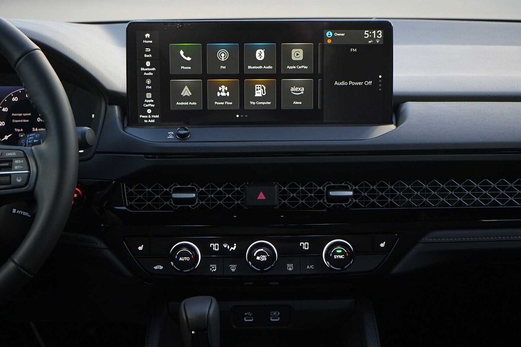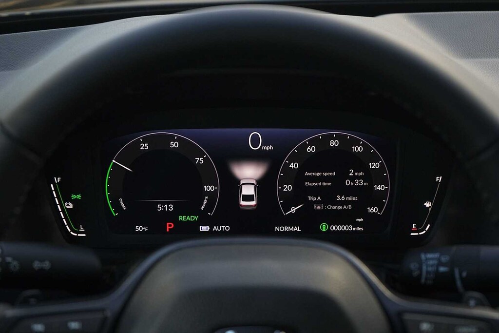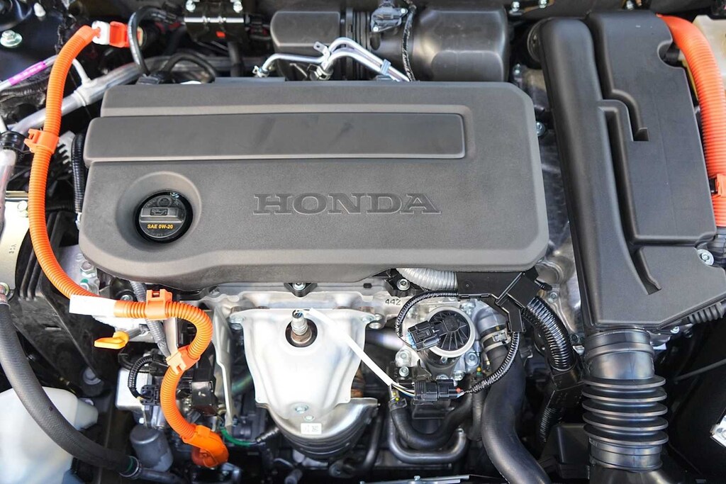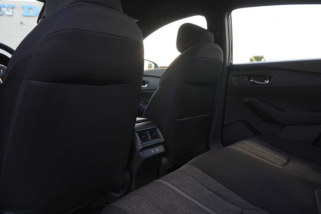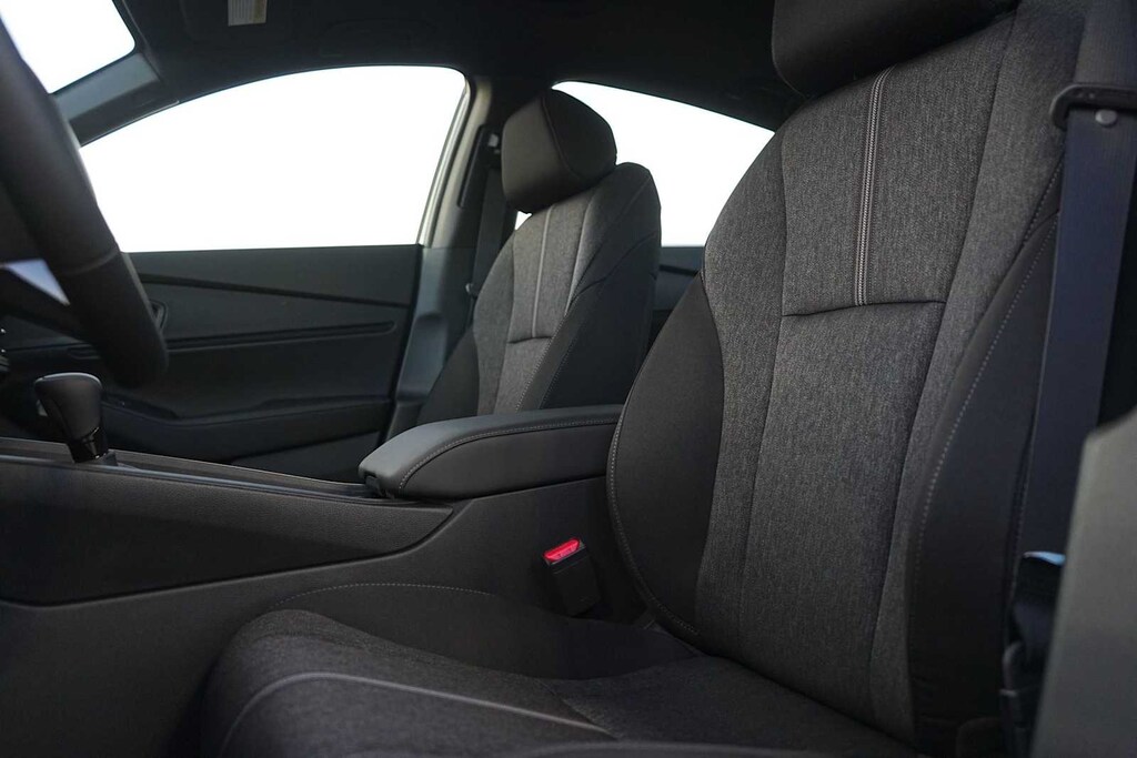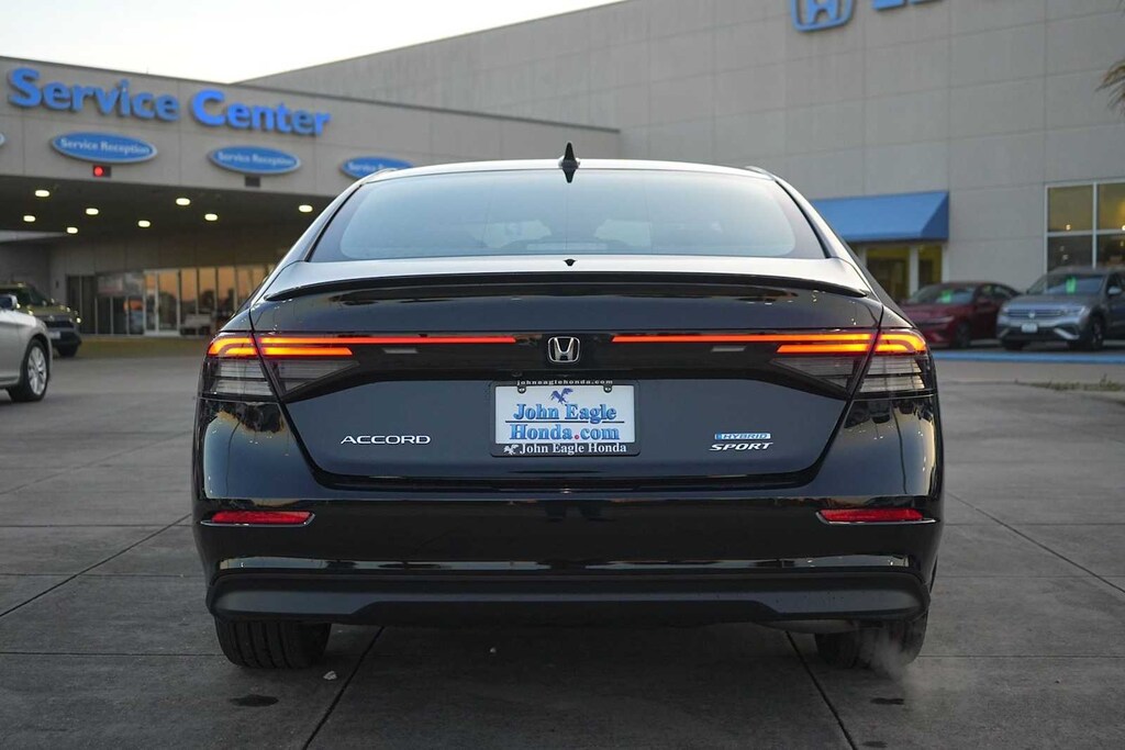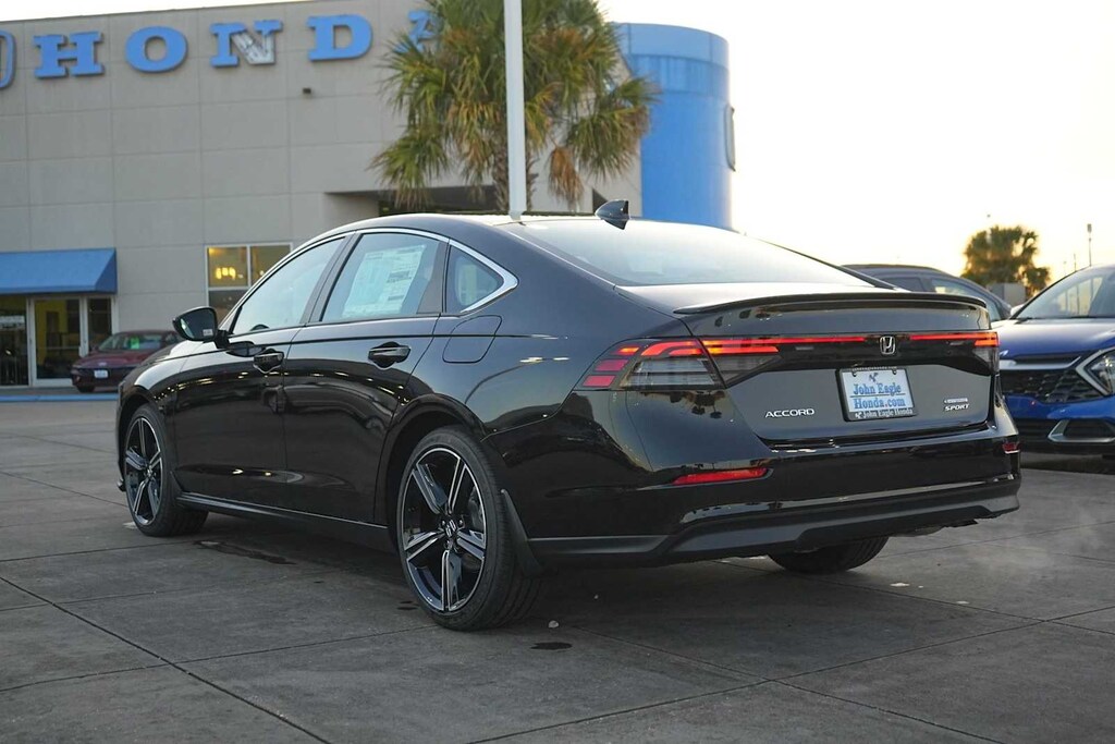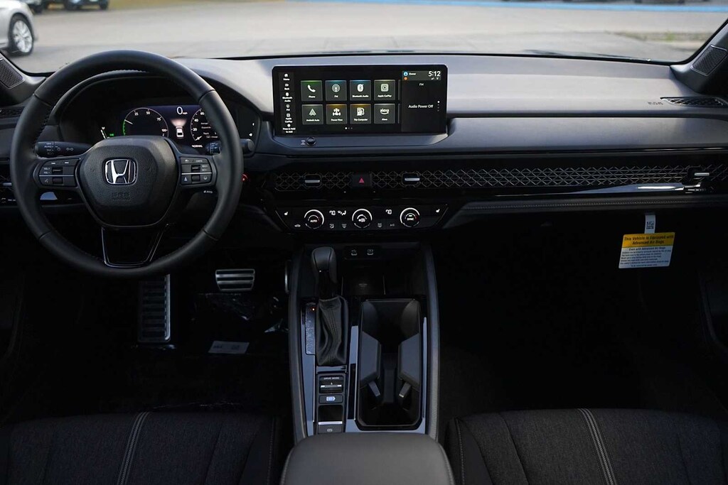 2025 Honda Accord Hybrid Sport 2.0L I4 DOHC 16V, 4-Wheel Disc Brakes, 8 Speakers, ABS brakes, Adaptive Cruise Control: Adaptive Cruise Control (ACC) with Low-Speed Follow, Air Conditioning, Alloy wheels, AM/FM radio, Apple CarPlay/Android Auto, Auto High-beam Headlights, Automatic temperature control, Blind Spot Information (BSI) System warning, Brake assist, Bumpers: body-color, Compass, Delay-off headlights, Driver door bin, Driver vanity mirror, Dual front impact airbags, Dual front side impact airbags, Electronic Stability Control, Emergency communication system: HondaLink, Exterior Parking Camera Rear, Fabric Seat Trim, Four wheel independent suspension, Front anti-roll bar, Front Bucket Seats, Front Center Armrest, Front dual zone A/C, Front reading lights, Fully automatic headlights, Heated Front Bucket Seats, Heated front seats, Illuminated entry, Knee airbag, Lane departure: Lane Keeping Assist System (LKAS) active, Leather Shift Knob, Leather steering wheel, Low tire pressure warning, Occupant sensing airbag, Outside temperature display, Overhead airbag, Overhead console, Panic alarm, Passenger door bin, Passenger vanity mirror, Power door mirrors, Power driver seat, Power moonroof, Power steering, Power windows, Radio data system, Radio: 180-Watt Audio System, Rear anti-roll bar, Rear reading lights, Rear seat center armrest, Rear side impact airbag, Rear window defroster, Remote keyless entry, Security system, Speed control, Speed-sensing steering, Speed-Sensitive Wipers, Split folding rear seat, Spoiler, Steering wheel mounted audio controls, Telescoping steering wheel, Tilt steering wheel, Traction control, Trip computer, Variably intermittent wipers, Wheels: 19 x 8.5J Berlina Black, 2.0L I4 DOHC 16V. 46/41 City/Highway MPG
