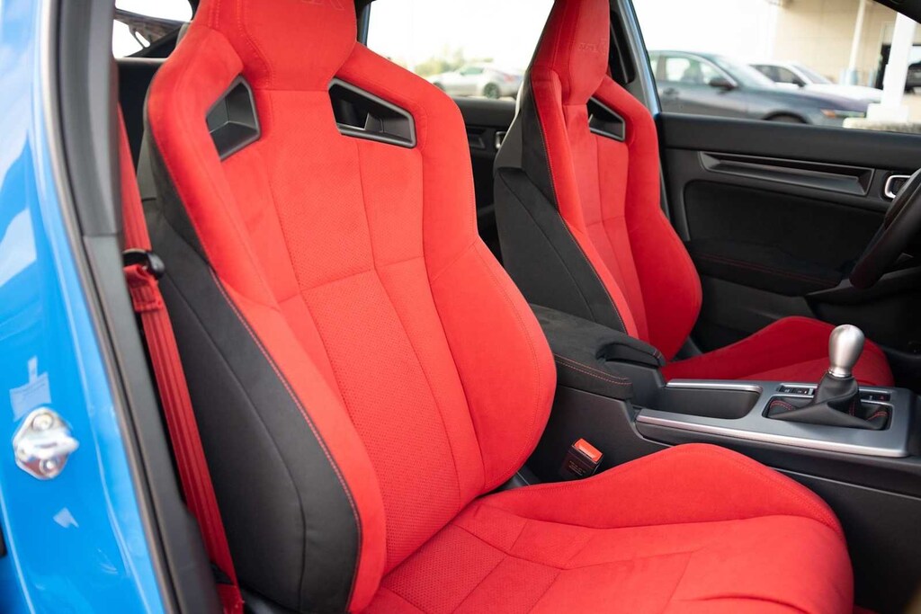 2025 Honda Civic Type R 12 Speakers, 4-Wheel Disc Brakes, ABS brakes, Adaptive suspension, Air Conditioning, Alloy wheels, AM/FM radio: SiriusXM, Apple CarPlay/Android Auto, Auto High-beam Headlights, Automatic temperature control, Blind Spot Information (BSI) System warning, Brake assist, Bumpers: body-color, Compass, Delay-off headlights, Driver door bin, Driver vanity mirror, Dual front impact airbags, Dual front side impact airbags, Electronic Stability Control, Exclusively-Designed High-Bolstered Sport Seats, Exterior Parking Camera Rear, Four wheel independent suspension, Front anti-roll bar, Front Bucket Seats, Front Center Armrest, Front dual zone A/C, Front reading lights, Fully automatic headlights, Illuminated entry, Knee airbag, Leather steering wheel, Low tire pressure warning, Navigation System, Occupant sensing airbag, Outside temperature display, Overhead airbag, Overhead console, Panic alarm, Passenger door bin, Passenger vanity mirror, Power door mirrors, Power steering, Power windows, Radio data system, Radio: Bose Premium Sound System with SiriusXM, Rear anti-roll bar, Rear window defroster, Rear window wiper, Remote keyless entry, Security system, Speed control, Speed-sensing steering, Split folding rear seat, Spoiler, Steering wheel mounted audio controls, Suede-Effect Fabric Seating Surfaces, Tachometer, Telescoping steering wheel, Tilt steering wheel, Traction control, Trip computer, Turn signal indicator mirrors, Variably intermittent wipers, Voltmeter, Wheels: 19 x 9.5J Matte Black. 22/28 City/Highway MPG