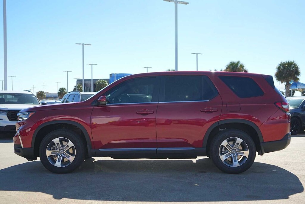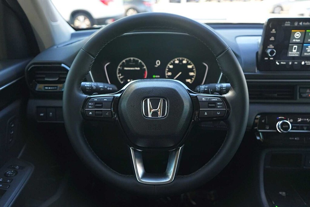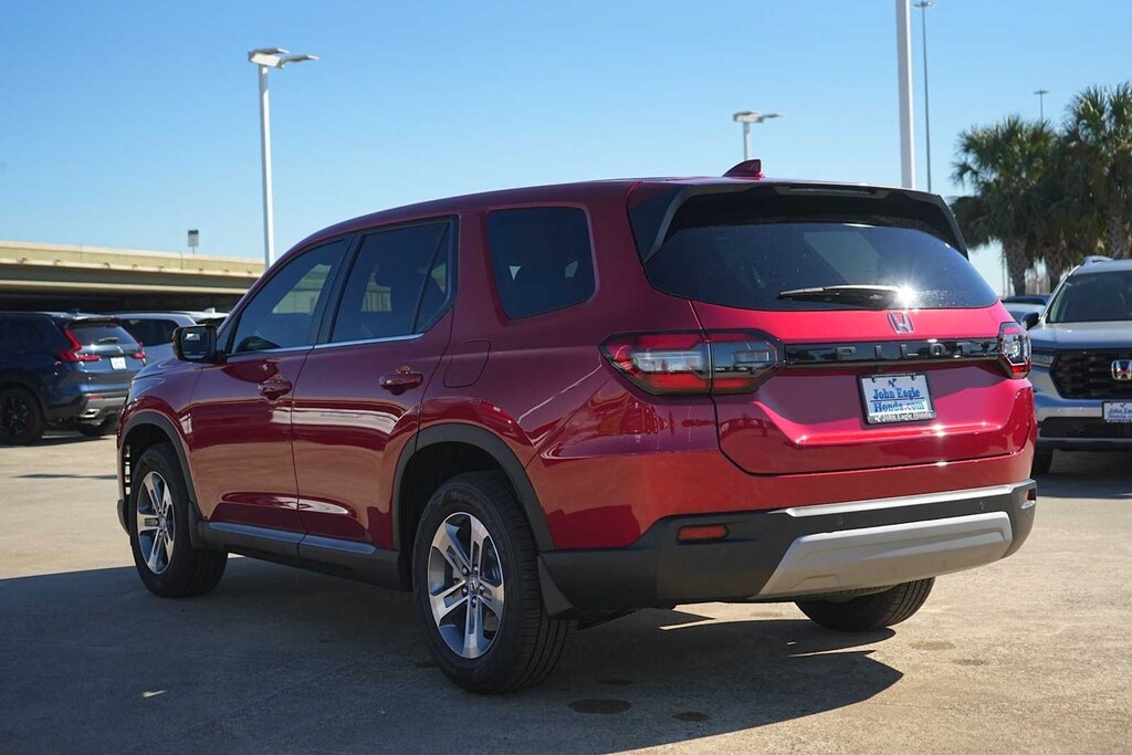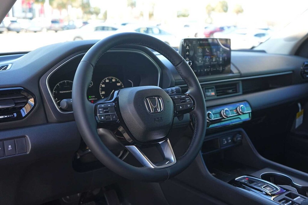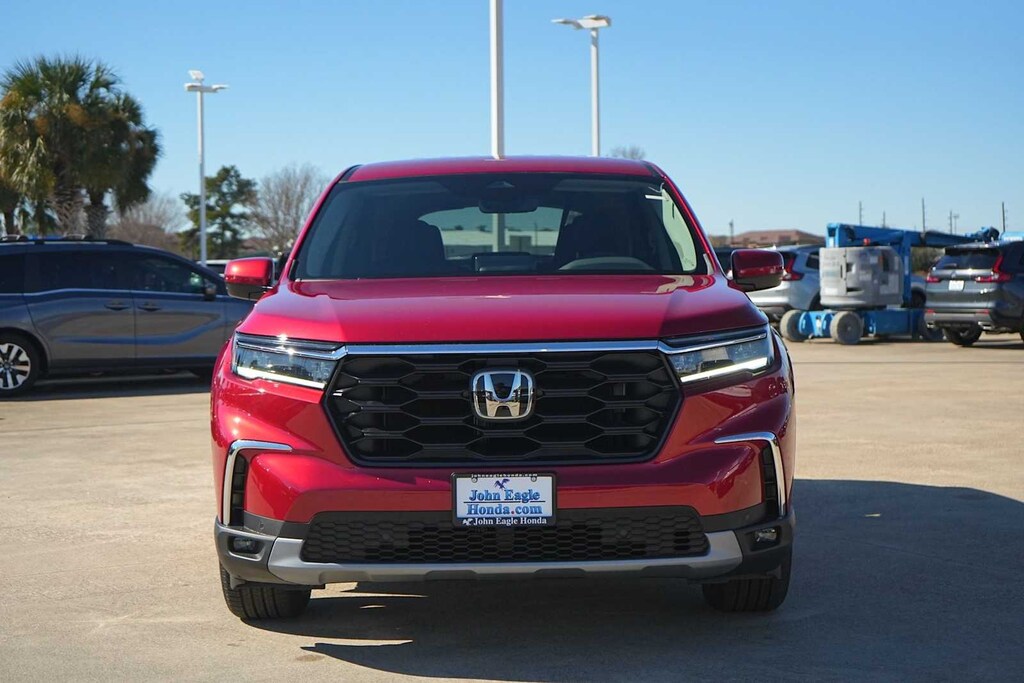 2025 Honda Pilot EX-L 3rd row seats: split-bench, 4-Wheel Disc Brakes, 4.167 Axle Ratio, 9 Speakers, ABS brakes, Adaptive Cruise Control: Adaptive Cruise Control (ACC) with Low-Speed Follow, Air Conditioning, Alloy wheels, AM/FM radio: SiriusXM, Apple CarPlay/Android Auto, Auto High-beam Headlights, Auto-dimming Rear-View mirror, Automatic temperature control, Blind Spot Information (BSI) System warning, Brake assist, Bumpers: body-color, Delay-off headlights, Driver door bin, Driver vanity mirror, Dual front impact airbags, Dual front side impact airbags, Electronic Stability Control, Emergency communication system: HondaLink Assist, Exterior Parking Camera Rear, Four wheel independent suspension, Front anti-roll bar, Front Bucket Seats, Front Center Armrest, Front dual zone A/C, Front fog lights, Front reading lights, Fully automatic headlights, Garage door transmitter: HomeLink, Heated door mirrors, Heated Front Bucket Seats, Heated front seats, Illuminated entry, Knee airbag, Lane departure: Lane Keeping Assist System (LKAS) active, Leather Seat Trim, Low tire pressure warning, Memory seat, Occupant sensing airbag, Outside temperature display, Overhead airbag, Overhead console, Panic alarm, Passenger door bin, Passenger vanity mirror, Power door mirrors, Power driver seat, Power Liftgate, Power passenger seat, Power steering, Power windows, Radio data system, Radio: 245-Watt Audio System, Rear air conditioning, Rear anti-roll bar, Rear reading lights, Rear seat center armrest, Rear window defroster, Rear window wiper, Reclining 3rd row seat, Remote keyless entry, Security system, SiriusXM, Speed control, Speed-sensing steering, Speed-Sensitive Wipers, Split folding rear seat, Spoiler, Steering wheel mounted audio controls, Tachometer, Telescoping steering wheel, Tilt steering wheel, Traction control, Trip computer, Turn signal indicator mirrors, Variably intermittent wipers, Wheels: 18 Pewter Gray Machined Face. 19/27 City/Highway MPG