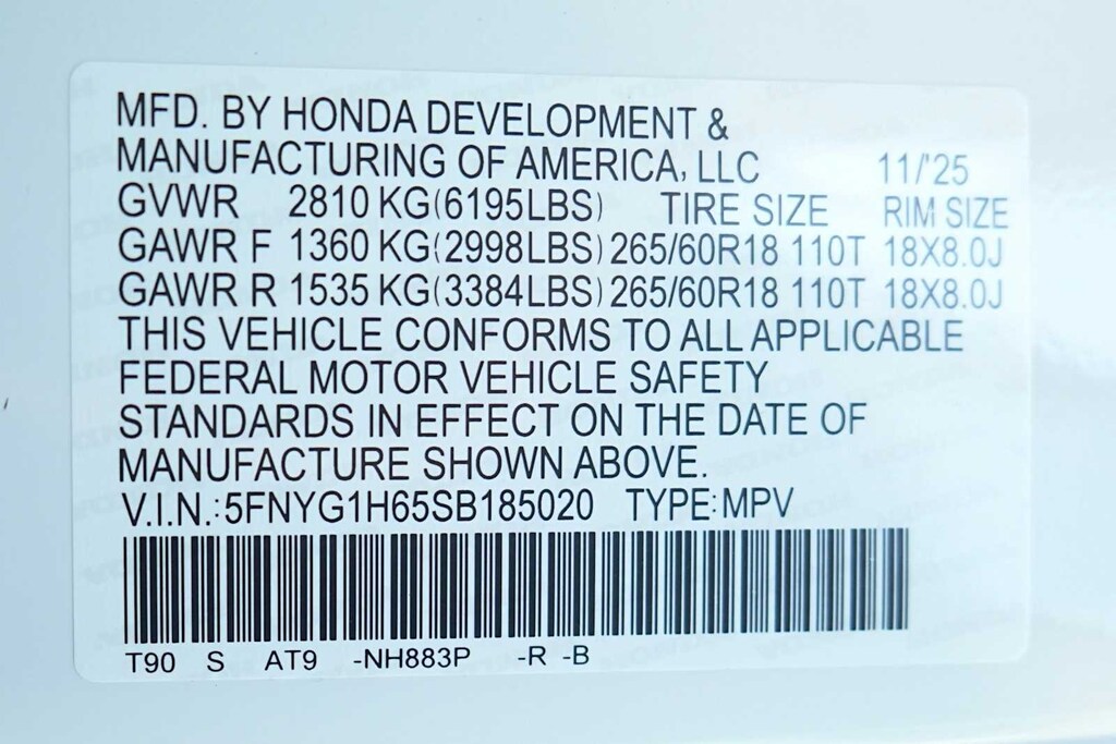 - 5FNYG1H65SB185020