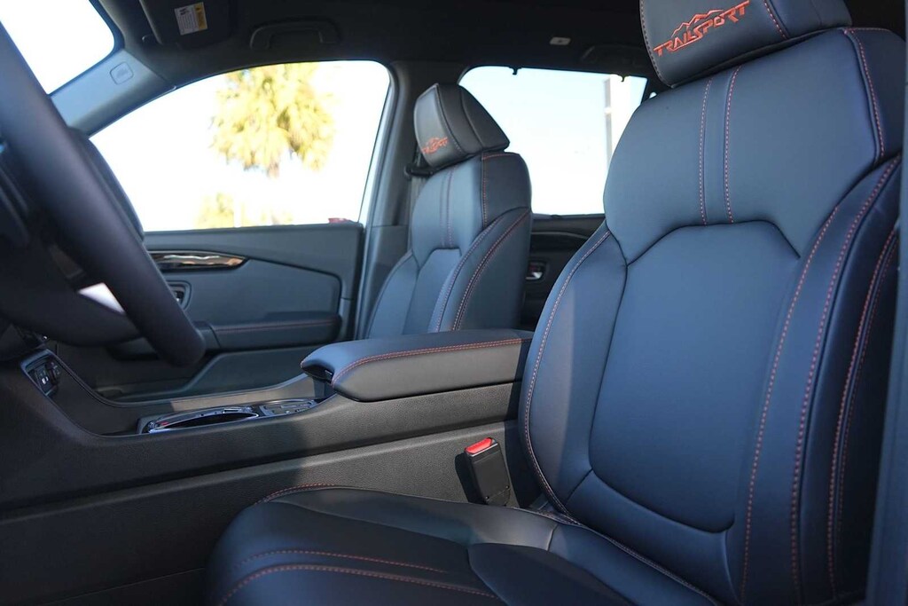 2025 Honda Pilot TrailSport AWD, 3rd row seats: split-bench, 4-Wheel Disc Brakes, 4.167 Axle Ratio, 9 Speakers, ABS brakes, Adaptive Cruise Control: Adaptive Cruise Control (ACC) with Low-Speed Follow, Air Conditioning, Alloy wheels, AM/FM radio: SiriusXM, Apple CarPlay/Android Auto, Auto High-beam Headlights, Auto-dimming Rear-View mirror, Automatic temperature control, Blind Spot Information (BSI) System warning, Brake assist, Bumpers: body-color, Delay-off headlights, Driver door bin, Driver vanity mirror, Dual front impact airbags, Dual front side impact airbags, Durable Synthetic Leather Seat Trim, Electronic Stability Control, Emergency communication system: HondaLink Assist, Exterior Parking Camera Rear, Four wheel independent suspension, Front anti-roll bar, Front Bucket Seats, Front Center Armrest, Front dual zone A/C, Front fog lights, Front reading lights, Fully automatic headlights, Garage door transmitter: HomeLink, Heated door mirrors, Heated Front Bucket Seats, Heated front seats, Illuminated entry, Knee airbag, Lane departure: Lane Keeping Assist System (LKAS) active, Low tire pressure warning, Memory seat, Occupant sensing airbag, Outside temperature display, Overhead airbag, Overhead console, Panic alarm, Passenger door bin, Passenger vanity mirror, Power door mirrors, Power driver seat, Power Liftgate, Power moonroof, Power passenger seat, Power steering, Power windows, Radio data system, Radio: 245-Watt Audio System, Rear air conditioning, Rear anti-roll bar, Rear reading lights, Rear window defroster, Rear window wiper, Reclining 3rd row seat, Remote keyless entry, Security system, SiriusXM, Speed control, Speed-sensing steering, Speed-Sensitive Wipers, Split folding rear seat, Spoiler, Steering wheel mounted audio controls, Tachometer, Telescoping steering wheel, Tilt steering wheel, Traction control, Trip computer, Turn signal indicator mirrors, Variably intermittent wipers, Wheels: 18 Shark Gray with Black Lug Nuts, AWD.