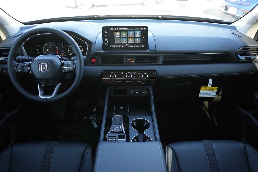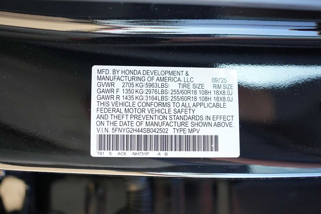 2025 Honda Pilot EX-L 3rd row seats: split-bench, 4-Wheel Disc Brakes, 4.167 Axle Ratio, 9 Speakers, ABS brakes, Adaptive Cruise Control: Adaptive Cruise Control (ACC) with Low-Speed Follow, Air Conditioning, Alloy wheels, AM/FM radio: SiriusXM, Apple CarPlay/Android Auto, Auto High-beam Headlights, Auto-dimming Rear-View mirror, Automatic temperature control, Blind Spot Information (BSI) System warning, Brake assist, Bumpers: body-color, Delay-off headlights, Driver door bin, Driver vanity mirror, Dual front impact airbags, Dual front side impact airbags, Electronic Stability Control, Emergency communication system: HondaLink Assist, Exterior Parking Camera Rear, Four wheel independent suspension, Front anti-roll bar, Front Bucket Seats, Front Center Armrest, Front dual zone A/C, Front fog lights, Front reading lights, Fully automatic headlights, Garage door transmitter: HomeLink, Heated door mirrors, Heated Front Bucket Seats, Heated front seats, Illuminated entry, Knee airbag, Lane departure: Lane Keeping Assist System (LKAS) active, Leather Seat Trim, Low tire pressure warning, Memory seat, Occupant sensing airbag, Outside temperature display, Overhead airbag, Overhead console, Panic alarm, Passenger door bin, Passenger vanity mirror, Power door mirrors, Power driver seat, Power Liftgate, Power passenger seat, Power steering, Power windows, Radio data system, Radio: 245-Watt Audio System, Rear air conditioning, Rear anti-roll bar, Rear reading lights, Rear seat center armrest, Rear window defroster, Rear window wiper, Reclining 3rd row seat, Remote keyless entry, Security system, SiriusXM, Speed control, Speed-sensing steering, Speed-Sensitive Wipers, Split folding rear seat, Spoiler, Steering wheel mounted audio controls, Tachometer, Telescoping steering wheel, Tilt steering wheel, Traction control, Trip computer, Turn signal indicator mirrors, Variably intermittent wipers, Wheels: 18 Pewter Gray Machined Face. 19/27 City/Highway MPG