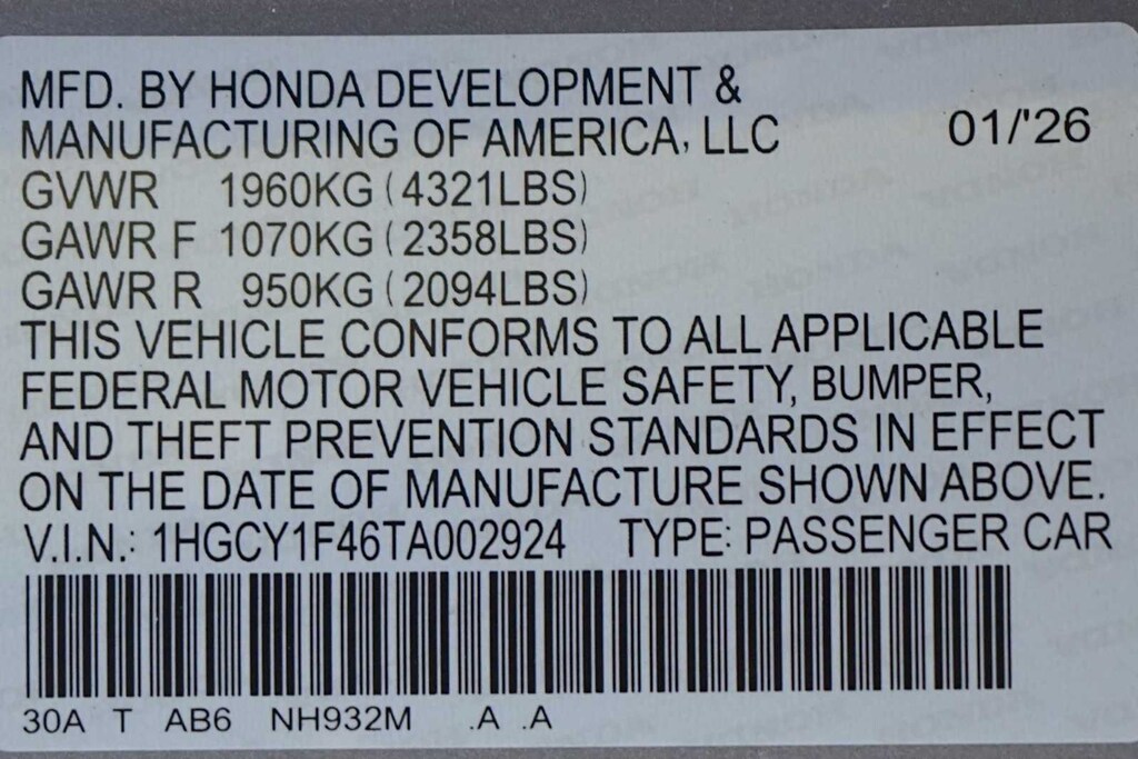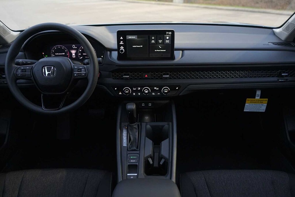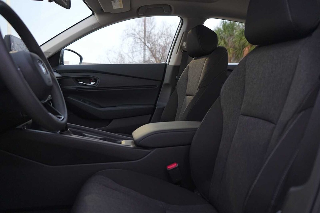 2026 Honda Accord SE Black Cloth, 4-Wheel Disc Brakes, 8 Speakers, ABS brakes, Adaptive Cruise Control: Adaptive Cruise Control (ACC) with Low-Speed Follow, Air Conditioning, Alloy wheels, AM/FM radio, Apple CarPlay/Android Auto, Auto High-beam Headlights, Automatic temperature control, Blind Spot Information (BSI) System warning, Brake assist, Bumpers: body-color, Compass, Delay-off headlights, Driver door bin, Driver vanity mirror, Dual front impact airbags, Dual front side impact airbags, Electronic Stability Control, Emergency communication system: HondaLink, Exterior Parking Camera Rear, Fabric Seat Trim, Four wheel independent suspension, Front anti-roll bar, Front Bucket Seats, Front Center Armrest, Front dual zone A/C, Front reading lights, Fully automatic headlights, Heated door mirrors, Heated Front Bucket Seats, Heated front seats, Illuminated entry, Knee airbag, Lane departure: Lane Keeping Assist System (LKAS) active, Low tire pressure warning, Occupant sensing airbag, Outside temperature display, Overhead airbag, Overhead console, Panic alarm, Passenger door bin, Passenger vanity mirror, Power door mirrors, Power driver seat, Power moonroof, Power steering, Power windows, Radio data system, Radio: 180-Watt Audio System, Rear anti-roll bar, Rear reading lights, Rear seat center armrest, Rear side impact airbag, Rear window defroster, Remote keyless entry, Security system, Speed control, Speed-sensing steering, Speed-Sensitive Wipers, Split folding rear seat, Steering wheel mounted audio controls, Tachometer, Telescoping steering wheel, Tilt steering wheel, Traction control, Trip computer, Variably intermittent wipers, Wheels: 19 x 8.5J Berlina Black, Black Cloth. 28/36 City/Highway MPG