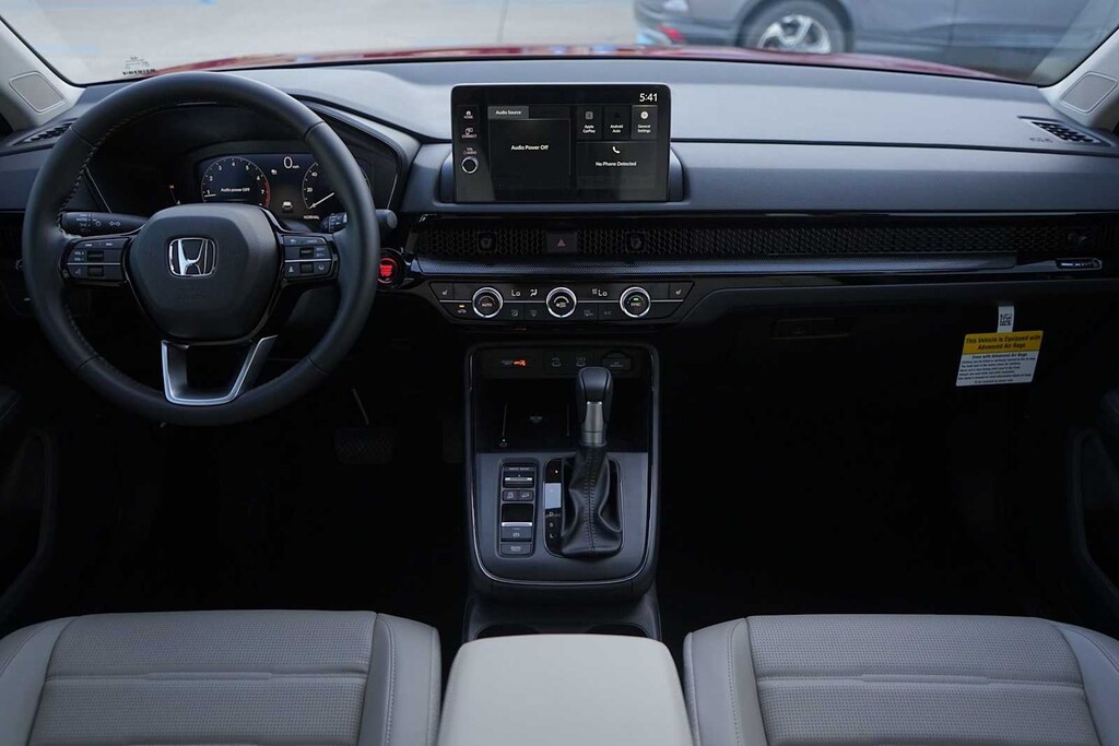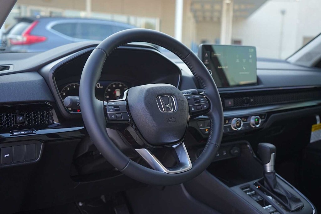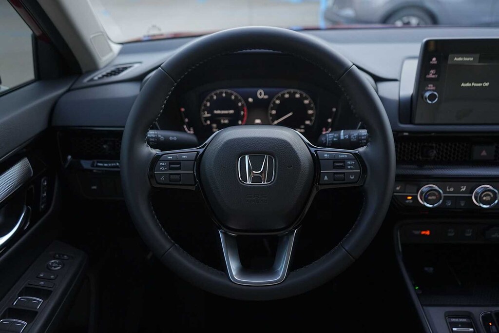 2026 Honda CR-V EX-L 4-Wheel Disc Brakes, 8 Speakers, ABS brakes, Adaptive Cruise Control: Adaptive Cruise Control (ACC) with Low-Speed Follow, Air Conditioning, Alloy wheels, AM/FM radio, Apple CarPlay/Android Auto, Auto High-beam Headlights, Auto-dimming Rear-View mirror, Automatic temperature control, Blind Spot Information (BSI) System warning, Brake assist, Bumpers: body-color, Compass, Delay-off headlights, Driver door bin, Driver vanity mirror, Dual front impact airbags, Dual front side impact airbags, Electronic Stability Control, Exterior Parking Camera Rear, Four wheel independent suspension, Front anti-roll bar, Front Bucket Seats, Front Center Armrest, Front dual zone A/C, Front reading lights, Fully automatic headlights, Heated door mirrors, Heated Front Bucket Seats, Heated front seats, Illuminated entry, Knee airbag, Leather Seat Trim, Leather Shift Knob, Leather steering wheel, Low tire pressure warning, Memory seat, Occupant sensing airbag, Outside temperature display, Overhead airbag, Overhead console, Panic alarm, Passenger door bin, Passenger vanity mirror, Power door mirrors, Power driver seat, Power Liftgate, Power moonroof, Power passenger seat, Power steering, Power windows, Radio data system, Radio: 320-Watt AM/FM Audio System, Rear anti-roll bar, Rear reading lights, Rear seat center armrest, Rear side impact airbag, Rear window defroster, Rear window wiper, Remote keyless entry, Security system, Speed control, Speed-sensing steering, Speed-Sensitive Wipers, Split folding rear seat, Spoiler, Steering wheel mounted audio controls, Tachometer, Telescoping steering wheel, Tilt steering wheel, Traction control, Trip computer, Turn signal indicator mirrors, Variably intermittent wipers, Wheels: 18 Shark Grey. 28/33 City/Highway MPG