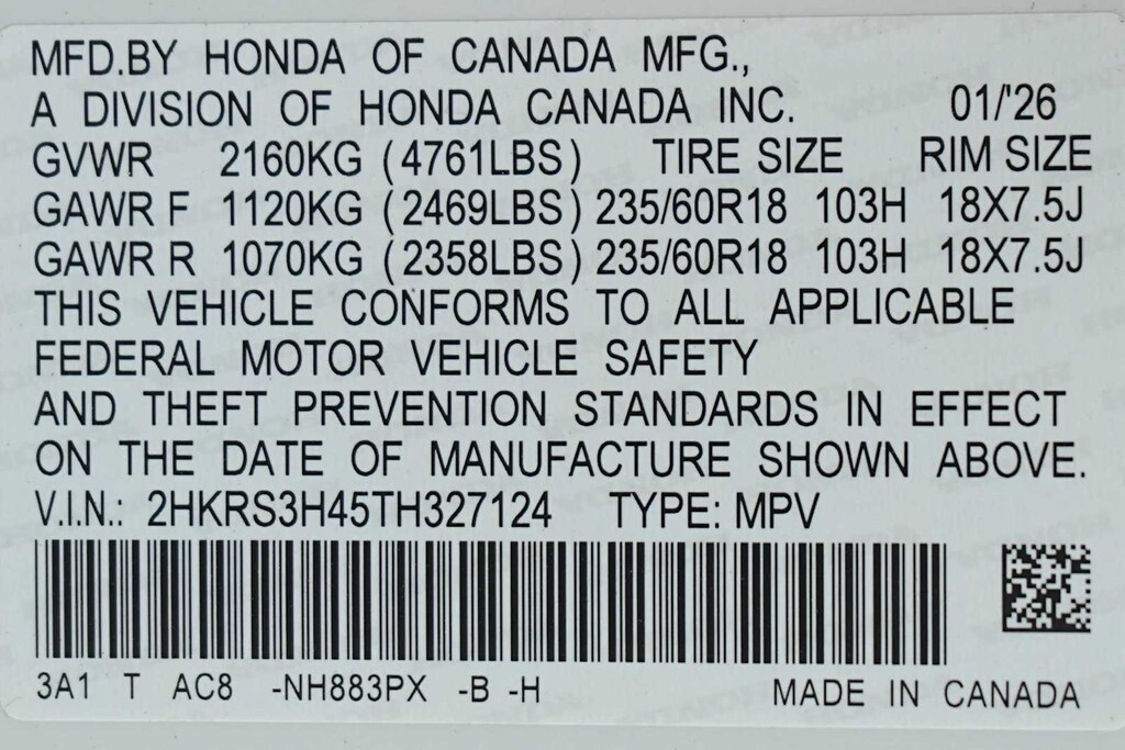 - Front tires: 235/60HR18.0