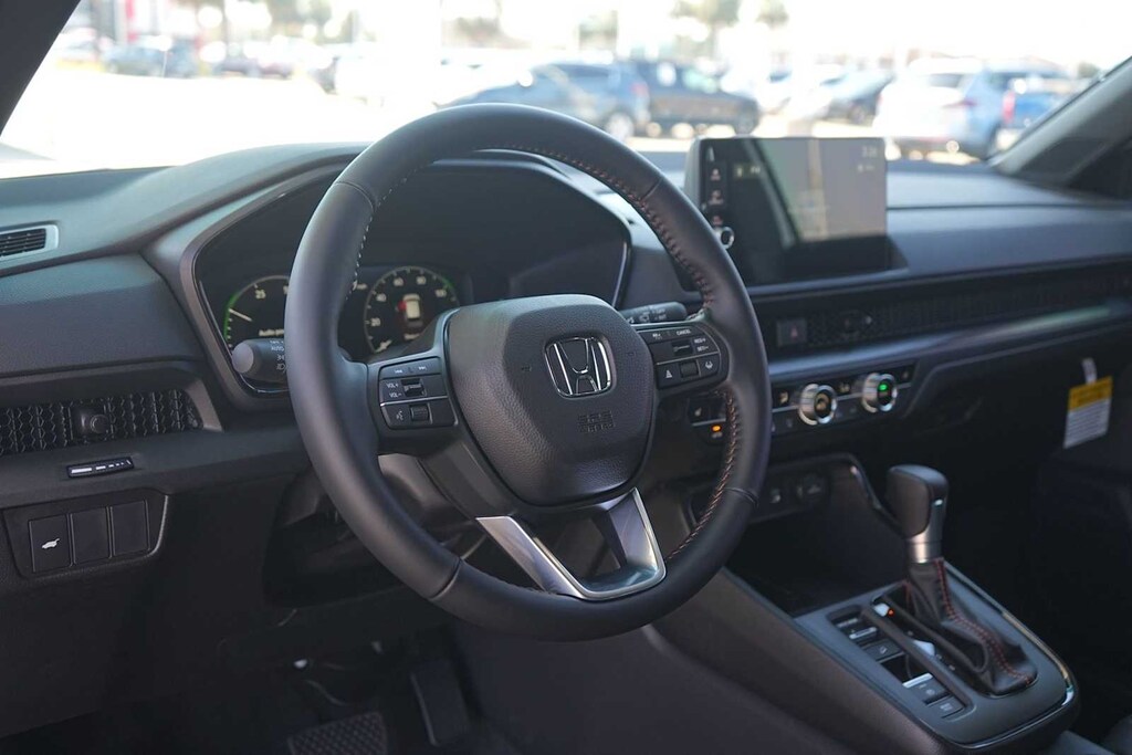 2026 Honda CR-V Hybrid Sport-L 2.0L I4 DOHC 16V, 4-Wheel Disc Brakes, 8 Speakers, ABS brakes, Adaptive Cruise Control: Adaptive Cruise Control (ACC) with Low-Speed Follow, Air Conditioning, Alloy wheels, AM/FM radio, Apple CarPlay/Android Auto, Auto High-beam Headlights, Auto-dimming Rear-View mirror, Automatic temperature control, Blind Spot Information (BSI) System warning, Brake assist, Bumpers: body-color, Compass, Delay-off headlights, Driver door bin, Driver vanity mirror, Dual front impact airbags, Dual front side impact airbags, Electronic Stability Control, Exterior Parking Camera Rear, Four wheel independent suspension, Front anti-roll bar, Front Bucket Seats, Front Center Armrest, Front dual zone A/C, Front reading lights, Fully automatic headlights, Heated door mirrors, Heated Front Bucket Seats, Heated front seats, Illuminated entry, Knee airbag, Leather Seat Trim, Leather Shift Knob, Leather steering wheel, Low tire pressure warning, Memory seat, Occupant sensing airbag, Outside temperature display, Overhead airbag, Overhead console, Panic alarm, Passenger door bin, Passenger vanity mirror, Power door mirrors, Power driver seat, Power Liftgate, Power moonroof, Power passenger seat, Power steering, Power windows, Radio data system, Radio: 320-Watt AM/FM Audio System, Rear anti-roll bar, Rear reading lights, Rear seat center armrest, Rear side impact airbag, Rear window defroster, Rear window wiper, Remote keyless entry, Security system, Speed control, Speed-sensing steering, Speed-Sensitive Wipers, Split folding rear seat, Spoiler, Steering wheel mounted audio controls, Telescoping steering wheel, Tilt steering wheel, Traction control, Trip computer, Turn signal indicator mirrors, Variably intermittent wipers, Wheels: 18 Berlina Black, 2.0L I4 DOHC 16V. 40/34 City/Highway MPG