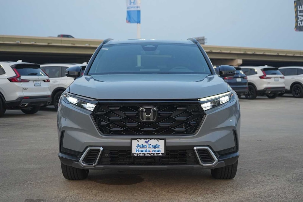 2026 Honda CR-V Hybrid Sport Touring 2.0L I4 DOHC 16V, 12 Speakers, 4-Wheel Disc Brakes, ABS brakes, Adaptive Cruise Control: Adaptive Cruise Control (ACC) with Low-Speed Follow, Air Conditioning, Alloy wheels, AM/FM radio, Apple CarPlay/Android Auto, Auto High-beam Headlights, Auto-dimming Rear-View mirror, Automatic temperature control, Blind Spot Information (BSI) System warning, Bose Premium Sound System, Brake assist, Bumpers: body-color, Compass, Delay-off headlights, Driver door bin, Driver vanity mirror, Dual front impact airbags, Dual front side impact airbags, Electronic Stability Control, Exterior Parking Camera Rear, Four wheel independent suspension, Front anti-roll bar, Front Bucket Seats, Front Center Armrest, Front dual zone A/C, Front reading lights, Fully automatic headlights, Heated door mirrors, Heated Front Bucket Seats, Heated front seats, Heated steering wheel, Illuminated entry, Knee airbag, Leather Seat Trim, Leather Shift Knob, Leather steering wheel, Low tire pressure warning, Memory seat, Navigation system: Google Maps, Occupant sensing airbag, Outside temperature display, Overhead airbag, Overhead console, Panic alarm, Passenger door bin, Passenger vanity mirror, Power door mirrors, Power driver seat, Power Liftgate, Power moonroof, Power passenger seat, Power steering, Power windows, Radio data system, Rain sensing wipers, Rear anti-roll bar, Rear reading lights, Rear seat center armrest, Rear side impact airbag, Rear window defroster, Rear window wiper, Remote keyless entry, Security system, Speed control, Speed-sensing steering, Speed-Sensitive Wipers, Split folding rear seat, Spoiler, Steering wheel mounted audio controls, Telescoping steering wheel, Tilt steering wheel, Traction control, Trip computer, Turn signal indicator mirrors, Variably intermittent wipers, Wheels: 19 Berlina Black, 2.0L I4 DOHC 16V. 40/34 City/Highway MPG