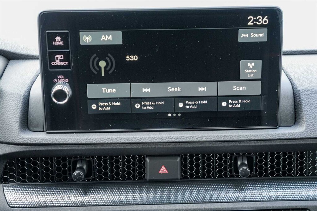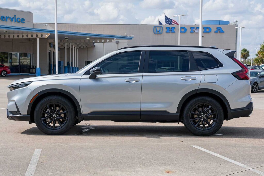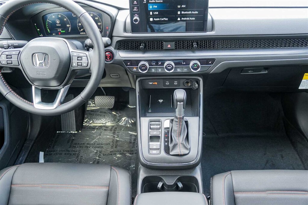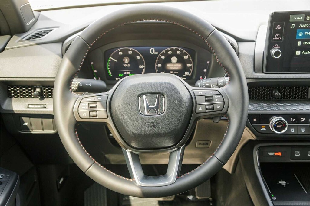 2026 Honda CR-V Hybrid Sport-L 2.0L I4 DOHC 16V, 4-Wheel Disc Brakes, 8 Speakers, ABS brakes, Adaptive Cruise Control: Adaptive Cruise Control (ACC) with Low-Speed Follow, Air Conditioning, Alloy wheels, Apple CarPlay/Android Auto, Auto High-beam Headlights, Auto-dimming Rear-View mirror, Automatic temperature control, Blind Spot Information (BSI) System warning, Brake assist, Bumpers: body-color, Compass, Delay-off headlights, Driver door bin, Driver vanity mirror, Dual front impact airbags, Dual front side impact airbags, Electronic Stability Control, Exterior Parking Camera Rear, Four wheel independent suspension, Front anti-roll bar, Front Bucket Seats, Front Center Armrest, Front dual zone A/C, Front reading lights, Fully automatic headlights, Heated door mirrors, Heated Front Bucket Seats, Heated front seats, Illuminated entry, Knee airbag, Leather Seat Trim, Leather Shift Knob, Leather steering wheel, Low tire pressure warning, Memory seat, Occupant sensing airbag, Outside temperature display, Overhead airbag, Overhead console, Panic alarm, Passenger door bin, Passenger vanity mirror, Power door mirrors, Power driver seat, Power Liftgate, Power moonroof, Power passenger seat, Power steering, Power windows, Radio data system, Radio: 320-Watt AM/FM Audio System, Rear anti-roll bar, Rear reading lights, Rear seat center armrest, Rear side impact airbag, Rear window defroster, Rear window wiper, Remote keyless entry, Security system, Speed control, Speed-sensing steering, Speed-Sensitive Wipers, Split folding rear seat, Spoiler, Steering wheel mounted audio controls, Telescoping steering wheel, Tilt steering wheel, Traction control, Trip computer, Turn signal indicator mirrors, Variably intermittent wipers, Wheels: 18 Berlina Black, 2.0L I4 DOHC 16V. 43/36 City/Highway MPG