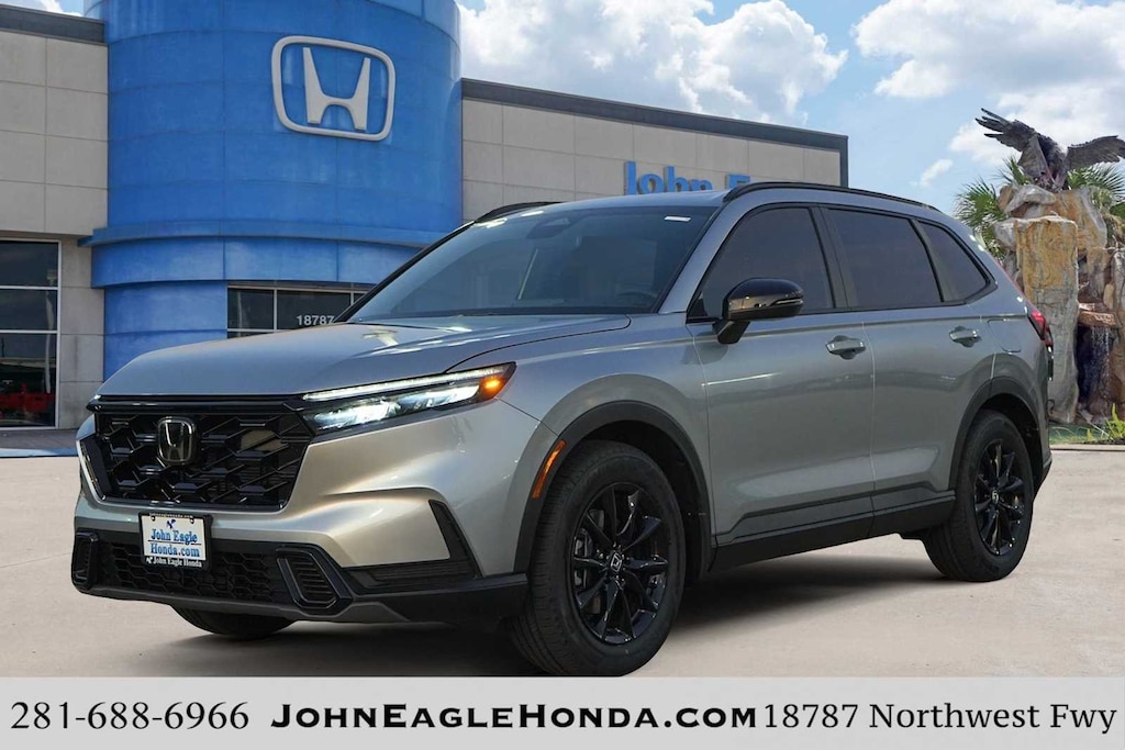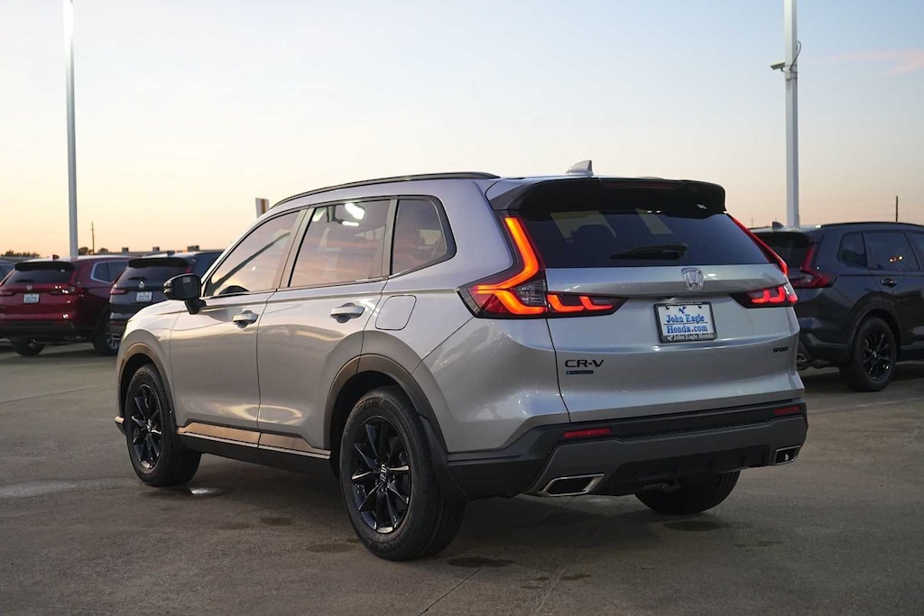 2026 Honda CR-V Hybrid Sport 2.0L I4 DOHC 16V, 4-Wheel Disc Brakes, 6 Speakers, ABS brakes, Adaptive Cruise Control: Adaptive Cruise Control (ACC) with Low-Speed Follow, Air Conditioning, Alloy wheels, Apple CarPlay/Android Auto, Auto High-beam Headlights, Automatic temperature control, Blind Spot Information (BSI) System warning, Brake assist, Bumpers: body-color, Cloth Seat Trim, Compass, Delay-off headlights, Driver door bin, Driver vanity mirror, Dual front impact airbags, Dual front side impact airbags, Electronic Stability Control, Exterior Parking Camera Rear, Four wheel independent suspension, Front anti-roll bar, Front Bucket Seats, Front Center Armrest, Front dual zone A/C, Front reading lights, Fully automatic headlights, Heated door mirrors, Heated Front Bucket Seats, Heated front seats, Illuminated entry, Knee airbag, Leather Shift Knob, Leather steering wheel, Low tire pressure warning, Occupant sensing airbag, Outside temperature display, Overhead airbag, Overhead console, Panic alarm, Passenger door bin, Passenger vanity mirror, Power door mirrors, Power driver seat, Power moonroof, Power steering, Power windows, Radio data system, Radio: 240-Watt AM/FM Audio System, Rear anti-roll bar, Rear reading lights, Rear seat center armrest, Rear side impact airbag, Rear window defroster, Rear window wiper, Remote keyless entry, Security system, Speed control, Speed-sensing steering, Speed-Sensitive Wipers, Split folding rear seat, Spoiler, Steering wheel mounted audio controls, Telescoping steering wheel, Tilt steering wheel, Traction control, Trip computer, Turn signal indicator mirrors, Variably intermittent wipers, Wheels: 18 Berlina Black, 2.0L I4 DOHC 16V. 43/36 City/Highway MPG