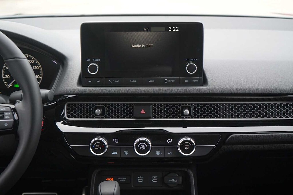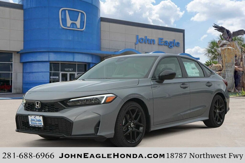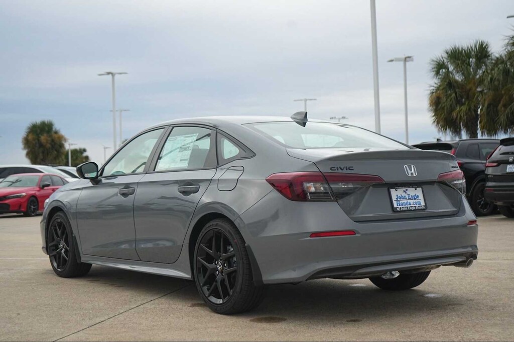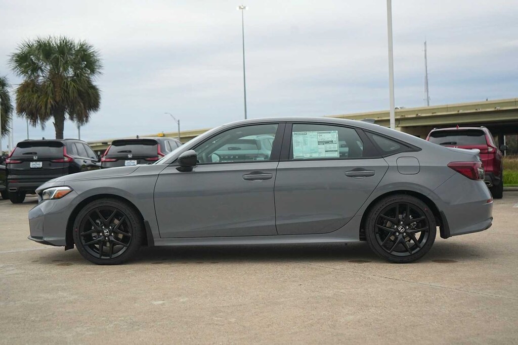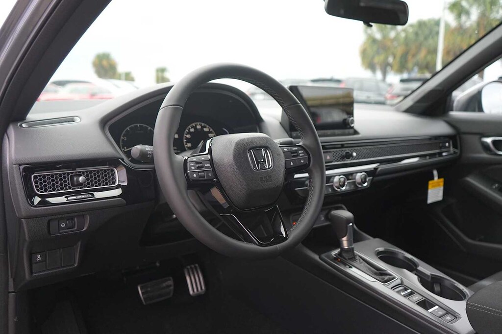 2026 Honda Civic Sport Black Artificial Leather, 4-Wheel Disc Brakes, 8 Speakers, ABS brakes, Adaptive Cruise Control: Adaptive Cruise Control (ACC) with Low-Speed Follow, Air Conditioning, Alloy wheels, AM/FM radio, Apple CarPlay/Android Auto, Auto High-beam Headlights, Automatic temperature control, Blind Spot Information (BSI) System warning, Brake assist, Bumpers: body-color, Cloth/Leatherette Seating Surfaces, Delay-off headlights, Driver door bin, Driver vanity mirror, Dual front impact airbags, Dual front side impact airbags, Electronic Stability Control, Emergency communication system: HondaLink, Exterior Parking Camera Rear, Four wheel independent suspension, Front anti-roll bar, Front Bucket Seats, Front Center Armrest, Front reading lights, Fully automatic headlights, Heated door mirrors, Illuminated entry, Knee airbag, Leather Shift Knob, Leather steering wheel, Low tire pressure warning, Occupant sensing airbag, Outside temperature display, Overhead airbag, Panic alarm, Passenger door bin, Passenger vanity mirror, Power door mirrors, Power steering, Power windows, Radio data system, Radio: 180-Watt Audio System, Rear anti-roll bar, Rear seat center armrest, Rear side impact airbag, Rear window defroster, Remote keyless entry, Security system, Speed control, Speed-sensing steering, Split folding rear seat, Steering wheel mounted audio controls, Tachometer, Telescoping steering wheel, Tilt steering wheel, Traction control, Trip computer, Wheels: 18 Gloss Black Alloy, Black Artificial Leather. 31/39 City/Highway MPG