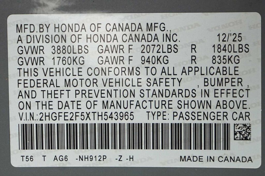 - 2HGFE2F5XTH543965
