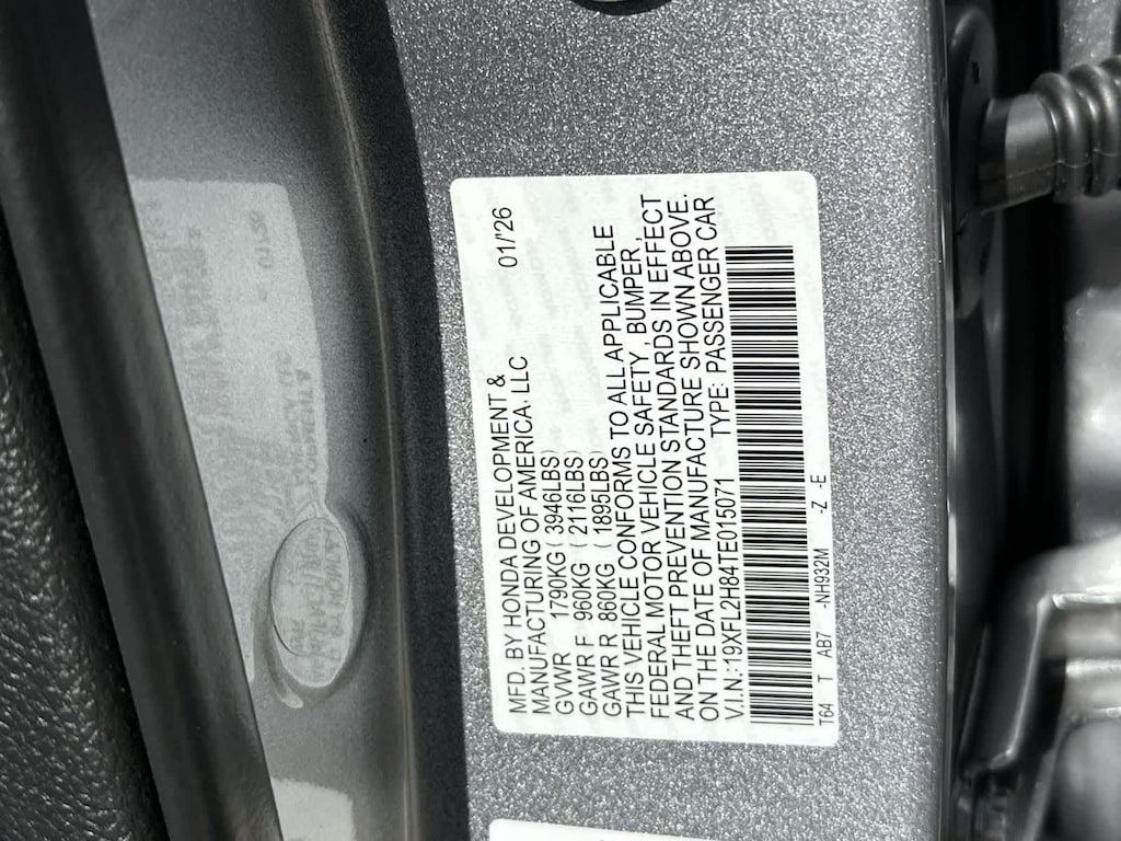 Solar Silver Metallic 2026 Honda Civic Sport CVT 2.0L I4 DOHC 16V