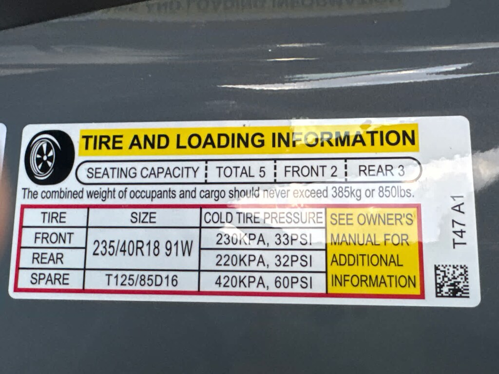 - Front tires: 235/40WR18.0