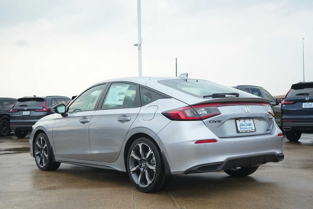 2026 Honda Civic Hybrid Sport Touring 2.0L I4 DOHC 16V, 12 Speakers, 4-Wheel Disc Brakes, ABS brakes, Adaptive Cruise Control: Adaptive Cruise Control (ACC) with Low-Speed Follow, Air Conditioning, Alloy wheels, AM/FM radio, Apple CarPlay/Android Auto, Auto High-beam Headlights, Auto-dimming Rear-View mirror, Automatic temperature control, Blind Spot Information (BSI) System warning, Bose Premium Sound System, Brake assist, Bumpers: body-color, Compass, Delay-off headlights, Driver door bin, Driver vanity mirror, Dual front impact airbags, Dual front side impact airbags, Electronic Stability Control, Emergency communication system: HondaLink, Exterior Parking Camera Rear, Four wheel independent suspension, Front anti-roll bar, Front Bucket Seats, Front Center Armrest, Front dual zone A/C, Front reading lights, Fully automatic headlights, Heated door mirrors, Heated Front Bucket Seats, Heated front seats, Illuminated entry, Knee airbag, Lane departure: Lane Keeping Assist System (LKAS) active, Leather Shift Knob, Leather steering wheel, Leather-Trimmed Seat Trim, Low tire pressure warning, Navigation system: Google Maps, Occupant sensing airbag, Outside temperature display, Overhead airbag, Overhead console, Panic alarm, Passenger door bin, Passenger vanity mirror, Power door mirrors, Power driver seat, Power moonroof, Power passenger seat, Power steering, Power windows, Radio data system, Rain sensing wipers, Rear anti-roll bar, Rear seat center armrest, Rear side impact airbag, Rear window defroster, Rear window wiper, Remote keyless entry, Security system, Speed control, Speed-sensing steering, Split folding rear seat, Steering wheel mounted audio controls, Tachometer, Telescoping steering wheel, Tilt steering wheel, Traction control, Trip computer, Turn signal indicator mirrors, Variably intermittent wipers, Wheels: 18 Alloy w/Matte Shark Gray Inserts, 2.0L I4 DOHC 16V. 50/45 City/Highway MPG