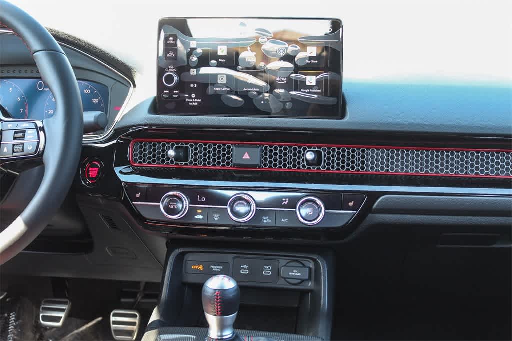 Navigation, Moonroof, Heated Driver Seat, Back-Up Camera, Turbocharged, Premium Sound System, iPod/MP3 Input, Bluetooth®, Aluminum Wheels, Keyless Start, Dual Zone A/C, Blind Spot Monitor, Smart Device Integration, Apple CarPlay®, WiFi Hotspot. Honda Civic with Urban Gray Pearl exterior and Black/Red interior features a 4 Cylinder Engine with 200 HP at 6000 RPM*. Rear Spoiler, MP3 Player, Keyless Entry, Child Safety Locks, Steering Wheel Controls.