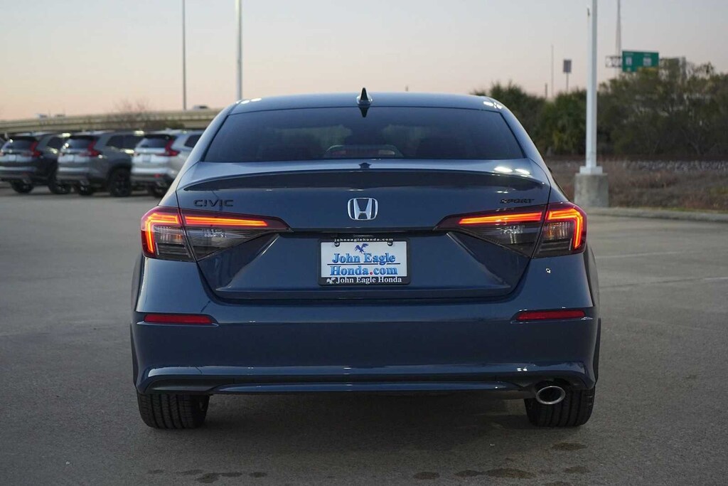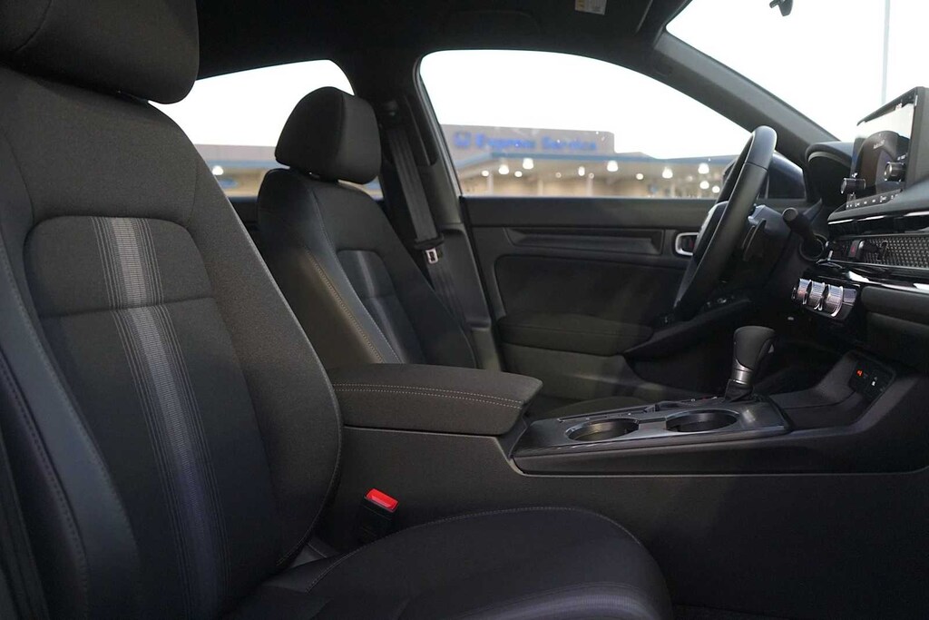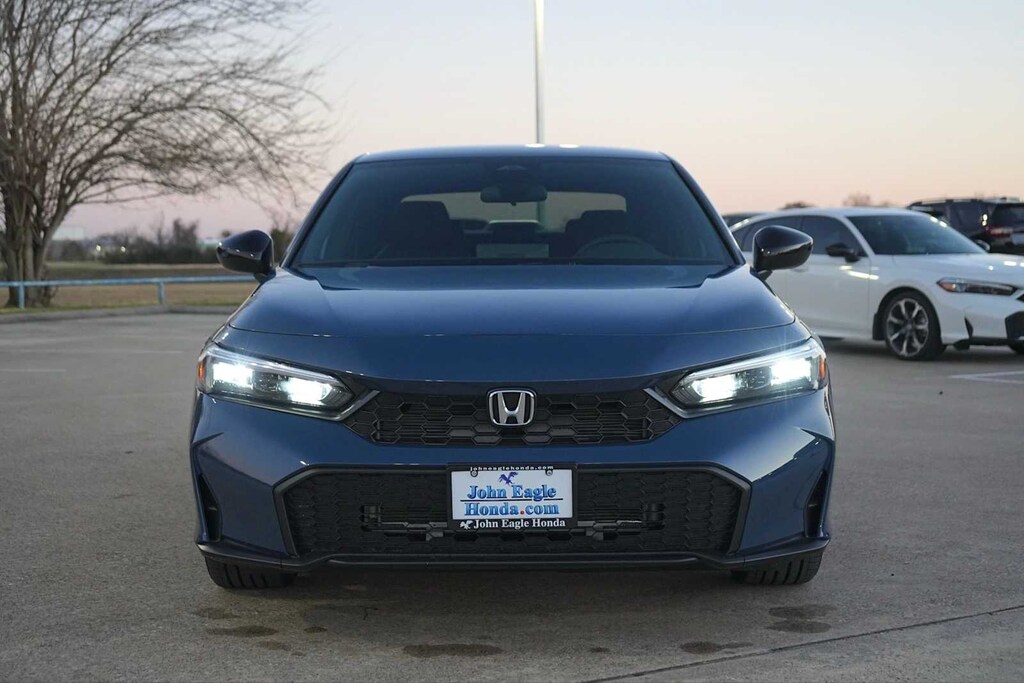 2026 Honda Civic Sport Black Artificial Leather, 4-Wheel Disc Brakes, 8 Speakers, ABS brakes, Adaptive Cruise Control: Adaptive Cruise Control (ACC) with Low-Speed Follow, Air Conditioning, Alloy wheels, AM/FM radio, Apple CarPlay/Android Auto, Auto High-beam Headlights, Automatic temperature control, Blind Spot Information (BSI) System warning, Brake assist, Bumpers: body-color, Cloth/Leatherette Seating Surfaces, Delay-off headlights, Driver door bin, Driver vanity mirror, Dual front impact airbags, Dual front side impact airbags, Electronic Stability Control, Emergency communication system: HondaLink, Exterior Parking Camera Rear, Four wheel independent suspension, Front anti-roll bar, Front Bucket Seats, Front Center Armrest, Front reading lights, Fully automatic headlights, Heated door mirrors, Illuminated entry, Knee airbag, Leather Shift Knob, Leather steering wheel, Low tire pressure warning, Occupant sensing airbag, Outside temperature display, Overhead airbag, Panic alarm, Passenger door bin, Passenger vanity mirror, Power door mirrors, Power steering, Power windows, Radio data system, Radio: 180-Watt Audio System, Rear anti-roll bar, Rear seat center armrest, Rear side impact airbag, Rear window defroster, Remote keyless entry, Security system, Speed control, Speed-sensing steering, Split folding rear seat, Steering wheel mounted audio controls, Tachometer, Telescoping steering wheel, Tilt steering wheel, Traction control, Trip computer, Wheels: 18 Gloss Black Alloy, Black Artificial Leather. 31/39 City/Highway MPG