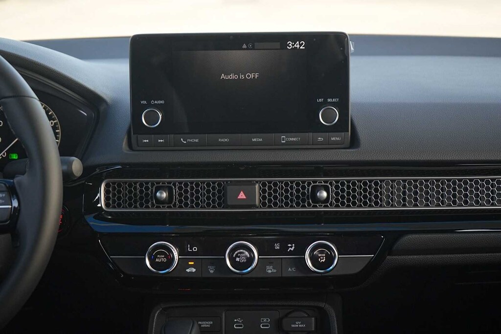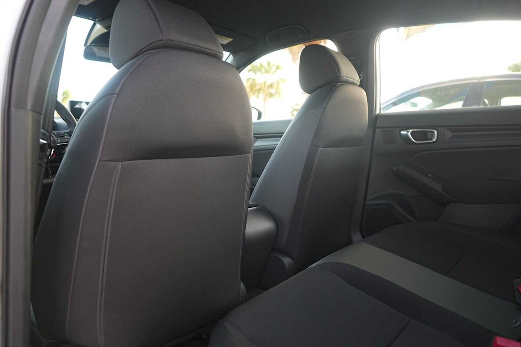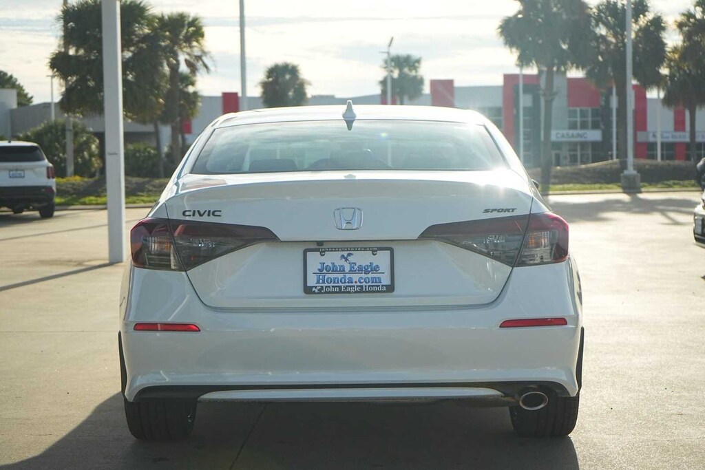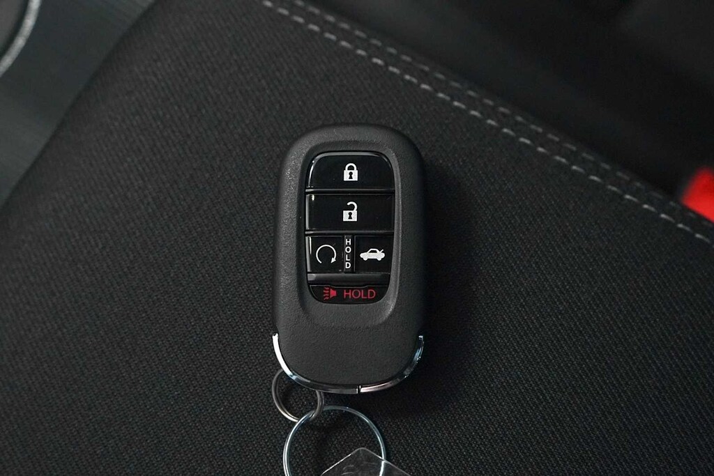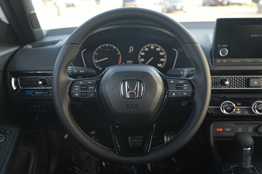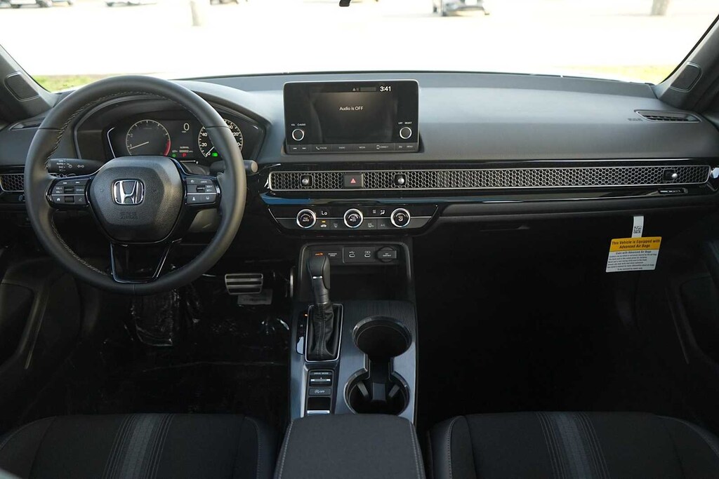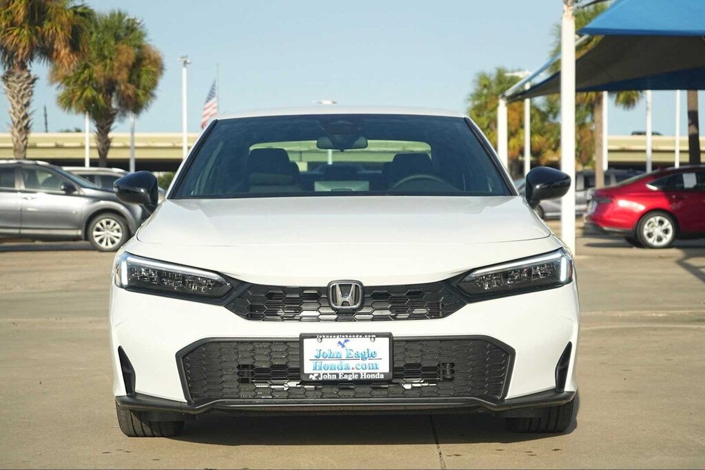 2026 Honda Civic Sport Black Artificial Leather, 4-Wheel Disc Brakes, 8 Speakers, ABS brakes, Adaptive Cruise Control: Adaptive Cruise Control (ACC) with Low-Speed Follow, Air Conditioning, Alloy wheels, AM/FM radio, Apple CarPlay/Android Auto, Auto High-beam Headlights, Automatic temperature control, Blind Spot Information (BSI) System warning, Brake assist, Bumpers: body-color, Cloth/Leatherette Seating Surfaces, Delay-off headlights, Driver door bin, Driver vanity mirror, Dual front impact airbags, Dual front side impact airbags, Electronic Stability Control, Emergency communication system: HondaLink, Exterior Parking Camera Rear, Four wheel independent suspension, Front anti-roll bar, Front Bucket Seats, Front Center Armrest, Front reading lights, Fully automatic headlights, Heated door mirrors, Illuminated entry, Knee airbag, Leather Shift Knob, Leather steering wheel, Low tire pressure warning, Occupant sensing airbag, Outside temperature display, Overhead airbag, Panic alarm, Passenger door bin, Passenger vanity mirror, Power door mirrors, Power steering, Power windows, Radio data system, Radio: 180-Watt Audio System, Rear anti-roll bar, Rear seat center armrest, Rear side impact airbag, Rear window defroster, Remote keyless entry, Security system, Speed control, Speed-sensing steering, Split folding rear seat, Steering wheel mounted audio controls, Tachometer, Telescoping steering wheel, Tilt steering wheel, Traction control, Trip computer, Wheels: 18 Gloss Black Alloy, Black Artificial Leather. 31/39 City/Highway MPG