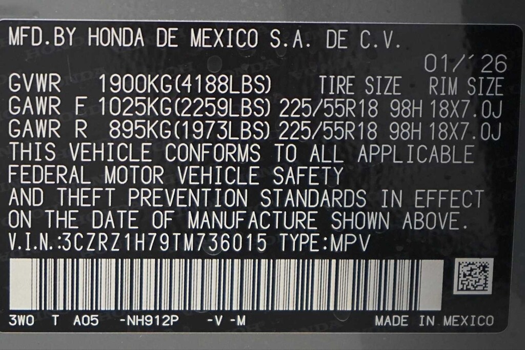 2026 Honda HR-V EX-L 18 Machine-Finished Alloy Wheels, 4-Wheel Disc Brakes, 8 Speakers, ABS brakes, Adaptive Cruise Control: Adaptive Cruise Control (ACC) with Low-Speed Follow, Air Conditioning, Alloy wheels, AM/FM radio, Apple CarPlay/Android Auto, Auto High-beam Headlights, Auto-dimming Rear-View mirror, Automatic temperature control, Blind Spot Information (BSI) System warning, Brake assist, Bumpers: body-color, Compass, Delay-off headlights, Driver door bin, Driver vanity mirror, Dual front impact airbags, Dual front side impact airbags, Electronic Stability Control, Exterior Parking Camera Rear, Four wheel independent suspension, Front anti-roll bar, Front Bucket Seats, Front Center Armrest, Front dual zone A/C, Front reading lights, Fully automatic headlights, Heated door mirrors, Heated Front Bucket Seats, Heated front seats, Illuminated entry, Knee airbag, Leather Shift Knob, Leather steering wheel, Leather-Trimmed Seats, Low tire pressure warning, Occupant sensing airbag, Outside temperature display, Overhead airbag, Panic alarm, Passenger door bin, Passenger vanity mirror, Power door mirrors, Power driver seat, Power moonroof, Power steering, Power windows, Radio data system, Radio: 180-Watt Audio System with 8 Speakers, Rear anti-roll bar, Rear reading lights, Rear side impact airbag, Rear window defroster, Rear window wiper, Remote keyless entry, Security system, Speed control, Speed-sensing steering, Split folding rear seat, Spoiler, Steering wheel mounted audio controls, Tachometer, Telescoping steering wheel, Tilt steering wheel, Traction control, Trip computer, Turn signal indicator mirrors, Variably intermittent wipers. 26/32 City/Highway MPG