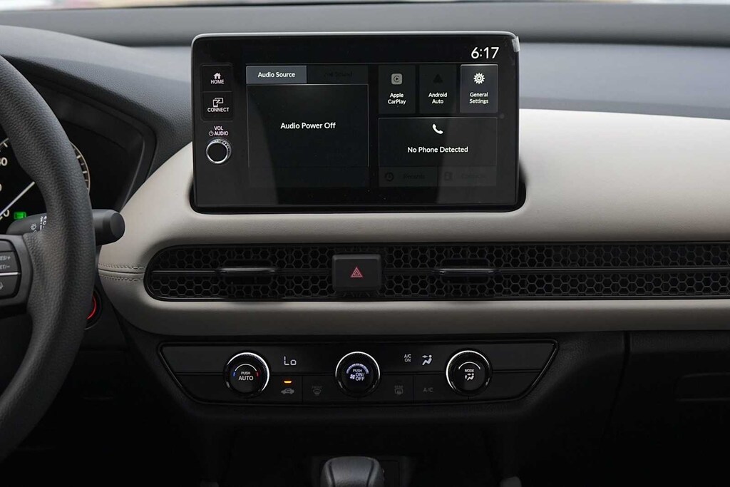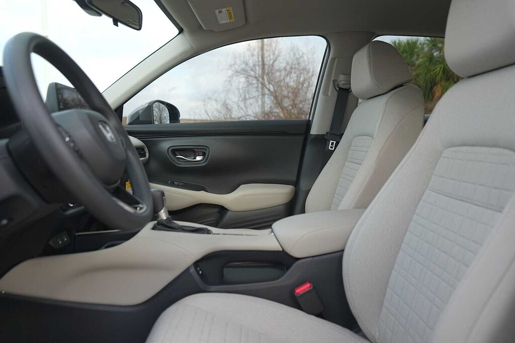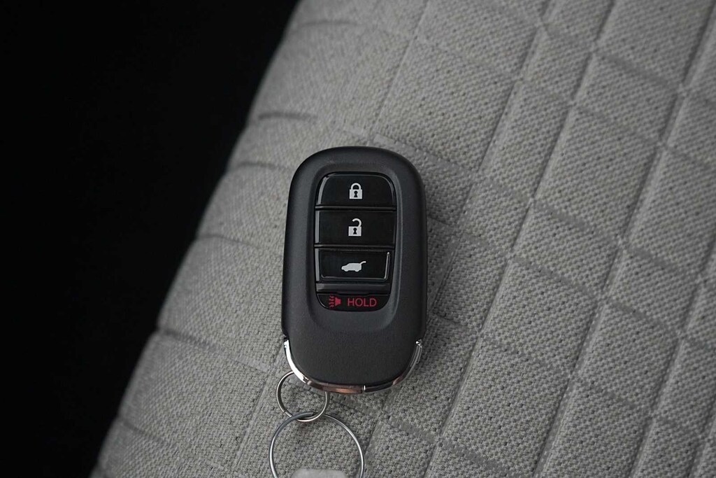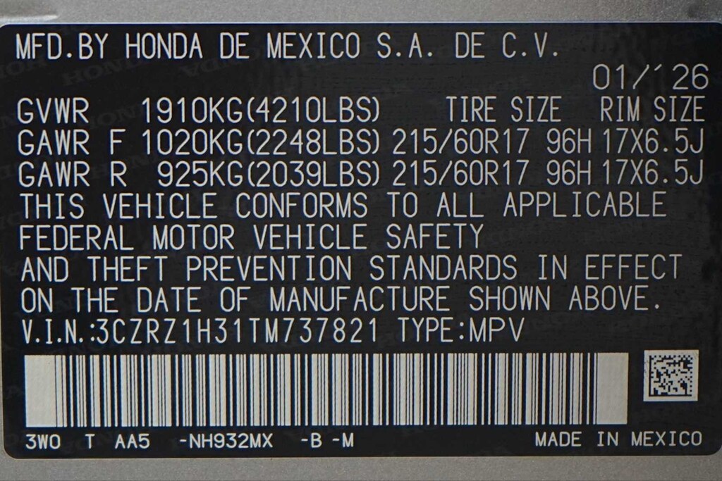 2026 Honda HR-V LX 4 Speakers, 4-Wheel Disc Brakes, ABS brakes, Adaptive Cruise Control: Adaptive Cruise Control (ACC) with Low-Speed Follow, Air Conditioning, Alloy wheels, AM/FM radio, Apple CarPlay/Android Auto, Auto High-beam Headlights, Automatic temperature control, Brake assist, Bumpers: body-color, Cloth Seat Trim, Compass, Delay-off headlights, Driver door bin, Driver vanity mirror, Dual front impact airbags, Dual front side impact airbags, Electronic Stability Control, Exterior Parking Camera Rear, Four wheel independent suspension, Front anti-roll bar, Front Bucket Seats, Front Center Armrest, Front reading lights, Fully automatic headlights, Illuminated entry, Knee airbag, Low tire pressure warning, Occupant sensing airbag, Outside temperature display, Overhead airbag, Panic alarm, Passenger door bin, Passenger vanity mirror, Power door mirrors, Power steering, Power windows, Radio data system, Radio: 180-Watt Audio System with 4 Speakers, Rear anti-roll bar, Rear reading lights, Rear side impact airbag, Rear window defroster, Rear window wiper, Remote keyless entry, Security system, Speed control, Speed-sensing steering, Split folding rear seat, Spoiler, Steering wheel mounted audio controls, Tachometer, Telescoping steering wheel, Tilt steering wheel, Traction control, Trip computer, Variably intermittent wipers, Wheels: 17 Pewter Gray Alloy. 26/32 City/Highway MPG