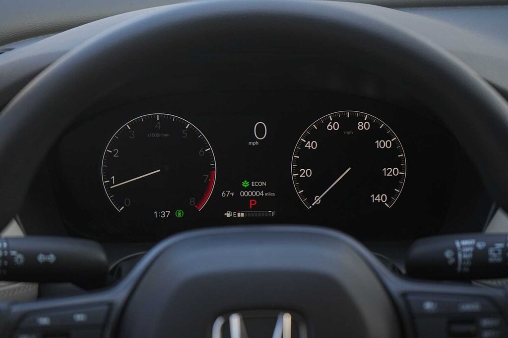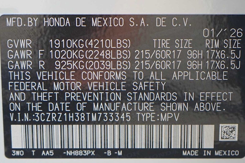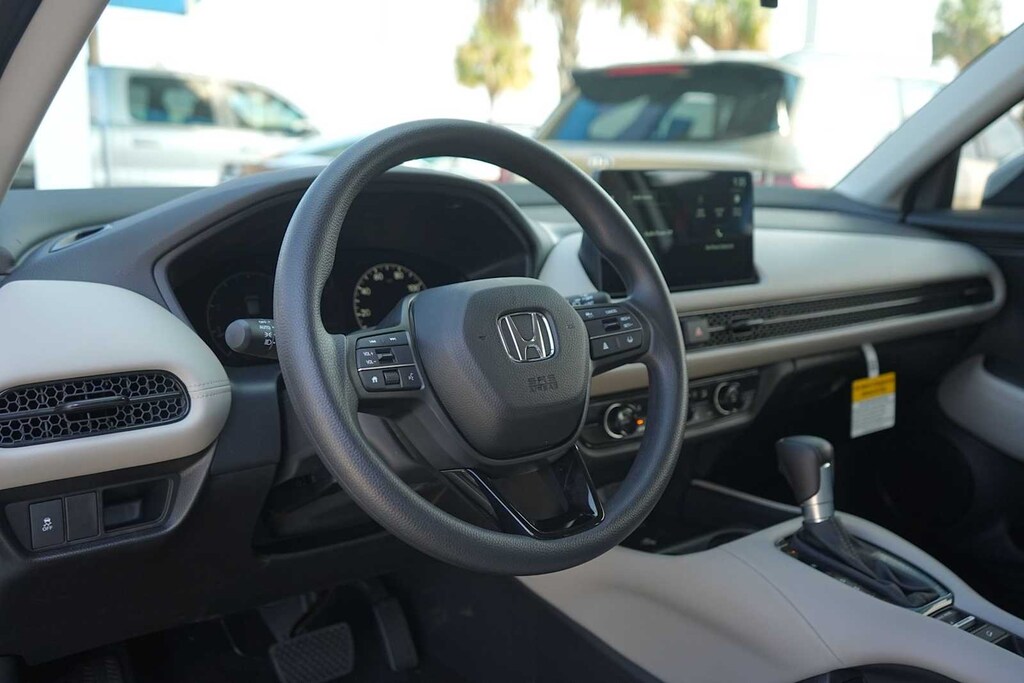 2026 Honda HR-V LX 4 Speakers, 4-Wheel Disc Brakes, ABS brakes, Adaptive Cruise Control: Adaptive Cruise Control (ACC) with Low-Speed Follow, Air Conditioning, Alloy wheels, AM/FM radio, Apple CarPlay/Android Auto, Auto High-beam Headlights, Automatic temperature control, Brake assist, Bumpers: body-color, Cloth Seat Trim, Compass, Delay-off headlights, Driver door bin, Driver vanity mirror, Dual front impact airbags, Dual front side impact airbags, Electronic Stability Control, Exterior Parking Camera Rear, Four wheel independent suspension, Front anti-roll bar, Front Bucket Seats, Front Center Armrest, Front reading lights, Fully automatic headlights, Illuminated entry, Knee airbag, Low tire pressure warning, Occupant sensing airbag, Outside temperature display, Overhead airbag, Panic alarm, Passenger door bin, Passenger vanity mirror, Power door mirrors, Power steering, Power windows, Radio data system, Radio: 180-Watt Audio System with 4 Speakers, Rear anti-roll bar, Rear reading lights, Rear side impact airbag, Rear window defroster, Rear window wiper, Remote keyless entry, Security system, Speed control, Speed-sensing steering, Split folding rear seat, Spoiler, Steering wheel mounted audio controls, Tachometer, Telescoping steering wheel, Tilt steering wheel, Traction control, Trip computer, Variably intermittent wipers, Wheels: 17 Pewter Gray Alloy. 26/32 City/Highway MPG