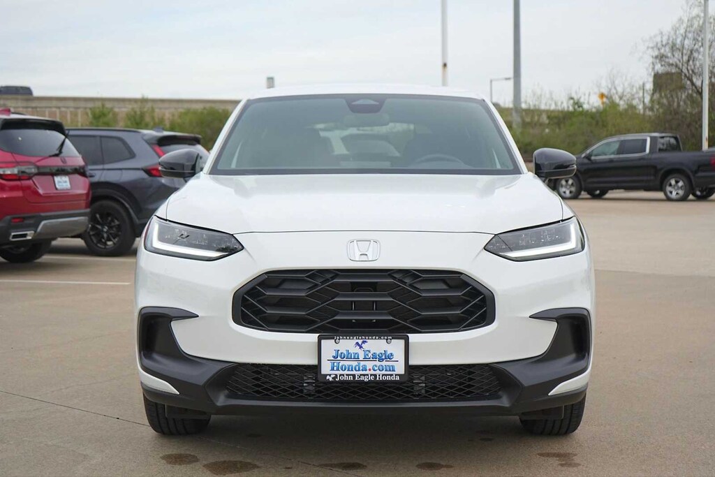 2026 Honda HR-V Sport 4-Wheel Disc Brakes, 6 Speakers, ABS brakes, Adaptive Cruise Control: Adaptive Cruise Control (ACC) with Low-Speed Follow, Air Conditioning, Alloy wheels, AM/FM radio, Apple CarPlay/Android Auto, Auto High-beam Headlights, Automatic temperature control, Blind Spot Information (BSI) System warning, Brake assist, Bumpers: body-color, Cloth Seat Trim, Compass, Delay-off headlights, Driver door bin, Driver vanity mirror, Dual front impact airbags, Dual front side impact airbags, Electronic Stability Control, Exterior Parking Camera Rear, Four wheel independent suspension, Front anti-roll bar, Front Bucket Seats, Front Center Armrest, Front reading lights, Fully automatic headlights, Heated door mirrors, Heated Front Bucket Seats, Heated front seats, Illuminated entry, Knee airbag, Low tire pressure warning, Occupant sensing airbag, Outside temperature display, Overhead airbag, Panic alarm, Passenger door bin, Passenger vanity mirror, Power door mirrors, Power steering, Power windows, Radio data system, Radio: 180-Watt Audio System with 6 Speakers, Rear anti-roll bar, Rear reading lights, Rear side impact airbag, Rear window defroster, Rear window wiper, Remote keyless entry, Security system, Speed control, Speed-sensing steering, Split folding rear seat, Spoiler, Steering wheel mounted audio controls, Tachometer, Telescoping steering wheel, Tilt steering wheel, Traction control, Trip computer, Turn signal indicator mirrors, Variably intermittent wipers, Wheels: 18 Gloss Black Alloy. 26/32 City/Highway MPG