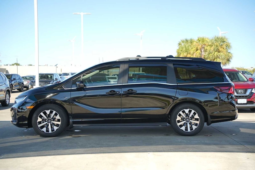 2026 Honda Odyssey EX-L 18 Machine-Finished Alloy Wheels, 3rd row seats: split-bench, 4-Wheel Disc Brakes, 7 Speakers, ABS brakes, Adaptive Cruise Control: Adaptive Cruise Control (ACC) with Low-Speed Follow, Air Conditioning, Alloy wheels, AM/FM radio: SiriusXM, Anti-whiplash front head restraints, Apple CarPlay/Android Auto, Auto High-beam Headlights, Auto-dimming Rear-View mirror, Automatic temperature control, Blind Spot Information (BSI) System warning, Brake assist, Bumpers: body-color, Delay-off headlights, Driver door bin, Driver vanity mirror, Drivers Seat Mounted Armrest, Dual front impact airbags, Dual front side impact airbags, Electronic Stability Control, Exterior Parking Camera Rear, Four wheel independent suspension, Front anti-roll bar, Front Bucket Seats, Front dual zone A/C, Front fog lights, Front reading lights, Fully automatic headlights, Garage door transmitter: HomeLink, Heated door mirrors, Heated Front Bucket Seats, Heated front seats, Illuminated entry, Knee airbag, Lane departure: Lane Keeping Assist System (LKAS) active, Leather steering wheel, Leather-Trimmed Seats, Low tire pressure warning, Memory seat, Occupant sensing airbag, Outside temperature display, Overhead airbag, Overhead console, Panic alarm, Passenger door bin, Passenger seat mounted armrest, Passenger vanity mirror, Power door mirrors, Power driver seat, Power Liftgate, Power moonroof, Power passenger seat, Power steering, Power windows, Radio data system, Radio: 160-Watt AM/FM/HD/SiriusXM Audio System, Rear air conditioning, Rear anti-roll bar, Rear reading lights, Rear seat center armrest, Rear window defroster, Rear window wiper, Reclining 3rd row seat, Remote keyless entry, Security system, Speed control, Speed-sensing steering, Speed-Sensitive Wipers, Split folding rear seat, Spoiler, Steering wheel mounted audio controls, Tachometer, Telescoping steering wheel, Tilt steering wheel, Traction control, Trip computer, Turn signal indicator mirrors, Variably intermittent wipers. 19/28 City/Highway MPG