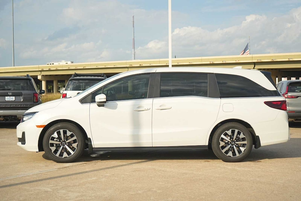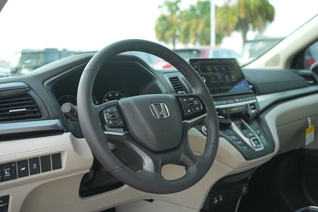 2026 Honda Odyssey EX-L 18 Machine-Finished Alloy Wheels, 3rd row seats: split-bench, 4-Wheel Disc Brakes, 7 Speakers, ABS brakes, Adaptive Cruise Control: Adaptive Cruise Control (ACC) with Low-Speed Follow, Air Conditioning, Alloy wheels, AM/FM radio: SiriusXM, Anti-whiplash front head restraints, Apple CarPlay/Android Auto, Auto High-beam Headlights, Auto-dimming Rear-View mirror, Automatic temperature control, Blind Spot Information (BSI) System warning, Brake assist, Bumpers: body-color, Delay-off headlights, Driver door bin, Driver vanity mirror, Drivers Seat Mounted Armrest, Dual front impact airbags, Dual front side impact airbags, Electronic Stability Control, Exterior Parking Camera Rear, Four wheel independent suspension, Front anti-roll bar, Front Bucket Seats, Front dual zone A/C, Front fog lights, Front reading lights, Fully automatic headlights, Garage door transmitter: HomeLink, Heated door mirrors, Heated Front Bucket Seats, Heated front seats, Illuminated entry, Knee airbag, Lane departure: Lane Keeping Assist System (LKAS) active, Leather steering wheel, Leather-Trimmed Seats, Low tire pressure warning, Memory seat, Occupant sensing airbag, Outside temperature display, Overhead airbag, Overhead console, Panic alarm, Passenger door bin, Passenger seat mounted armrest, Passenger vanity mirror, Power door mirrors, Power driver seat, Power Liftgate, Power moonroof, Power passenger seat, Power steering, Power windows, Radio data system, Radio: 160-Watt AM/FM/HD/SiriusXM Audio System, Rear air conditioning, Rear anti-roll bar, Rear reading lights, Rear seat center armrest, Rear window defroster, Rear window wiper, Reclining 3rd row seat, Remote keyless entry, Security system, Speed control, Speed-sensing steering, Speed-Sensitive Wipers, Split folding rear seat, Spoiler, Steering wheel mounted audio controls, Tachometer, Telescoping steering wheel, Tilt steering wheel, Traction control, Trip computer, Turn signal indicator mirrors, Variably intermittent wipers. 19/28 City/Highway MPG