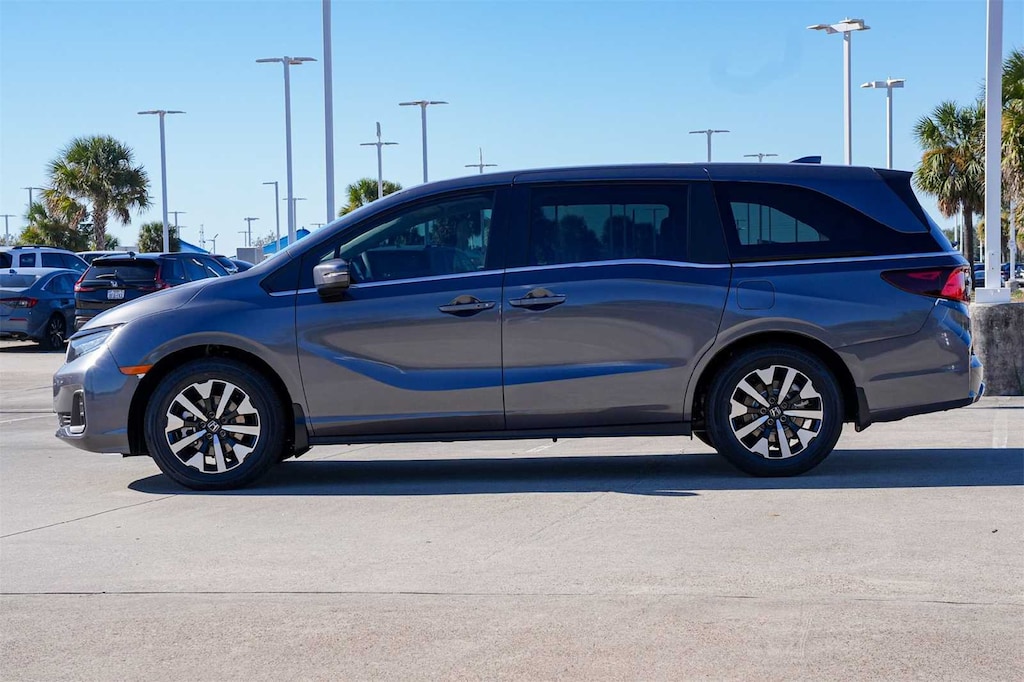 2026 Honda Odyssey EX-L 18 Machine-Finished Alloy Wheels, 3rd row seats: split-bench, 4-Wheel Disc Brakes, 7 Speakers, ABS brakes, Adaptive Cruise Control: Adaptive Cruise Control (ACC) with Low-Speed Follow, Air Conditioning, Alloy wheels, AM/FM radio: SiriusXM, Anti-whiplash front head restraints, Apple CarPlay/Android Auto, Auto High-beam Headlights, Auto-dimming Rear-View mirror, Automatic temperature control, Blind Spot Information (BSI) System warning, Brake assist, Bumpers: body-color, Delay-off headlights, Driver door bin, Driver vanity mirror, Drivers Seat Mounted Armrest, Dual front impact airbags, Dual front side impact airbags, Electronic Stability Control, Exterior Parking Camera Rear, Four wheel independent suspension, Front anti-roll bar, Front Bucket Seats, Front dual zone A/C, Front fog lights, Front reading lights, Fully automatic headlights, Garage door transmitter: HomeLink, Heated door mirrors, Heated Front Bucket Seats, Heated front seats, Illuminated entry, Knee airbag, Lane departure: Lane Keeping Assist System (LKAS) active, Leather steering wheel, Leather-Trimmed Seats, Low tire pressure warning, Memory seat, Occupant sensing airbag, Outside temperature display, Overhead airbag, Overhead console, Panic alarm, Passenger door bin, Passenger seat mounted armrest, Passenger vanity mirror, Power door mirrors, Power driver seat, Power Liftgate, Power moonroof, Power passenger seat, Power steering, Power windows, Radio data system, Radio: 160-Watt AM/FM/HD/SiriusXM Audio System, Rear air conditioning, Rear anti-roll bar, Rear reading lights, Rear seat center armrest, Rear window defroster, Rear window wiper, Reclining 3rd row seat, Remote keyless entry, Security system, Speed control, Speed-sensing steering, Speed-Sensitive Wipers, Split folding rear seat, Spoiler, Steering wheel mounted audio controls, Tachometer, Telescoping steering wheel, Tilt steering wheel, Traction control, Trip computer, Turn signal indicator mirrors, Variably intermittent wipers. 19/28 City/Highway MPG