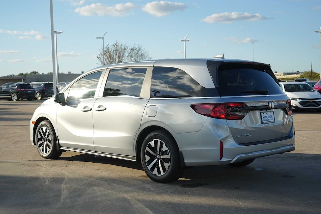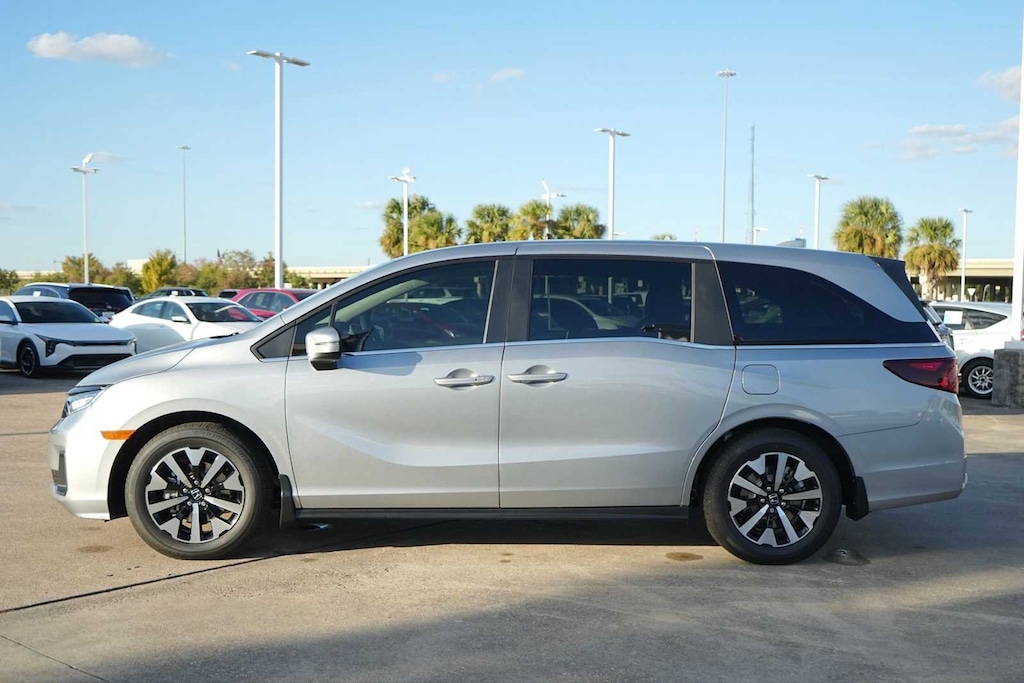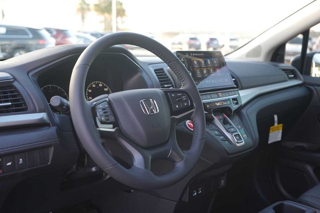 2026 Honda Odyssey EX-L 18 Machine-Finished Alloy Wheels, 3rd row seats: split-bench, 4-Wheel Disc Brakes, 7 Speakers, ABS brakes, Adaptive Cruise Control: Adaptive Cruise Control (ACC) with Low-Speed Follow, Air Conditioning, Alloy wheels, AM/FM radio: SiriusXM, Anti-whiplash front head restraints, Apple CarPlay/Android Auto, Auto High-beam Headlights, Auto-dimming Rear-View mirror, Automatic temperature control, Blind Spot Information (BSI) System warning, Brake assist, Bumpers: body-color, Delay-off headlights, Driver door bin, Driver vanity mirror, Drivers Seat Mounted Armrest, Dual front impact airbags, Dual front side impact airbags, Electronic Stability Control, Exterior Parking Camera Rear, Four wheel independent suspension, Front anti-roll bar, Front Bucket Seats, Front dual zone A/C, Front fog lights, Front reading lights, Fully automatic headlights, Garage door transmitter: HomeLink, Heated door mirrors, Heated Front Bucket Seats, Heated front seats, Illuminated entry, Knee airbag, Lane departure: Lane Keeping Assist System (LKAS) active, Leather steering wheel, Leather-Trimmed Seats, Low tire pressure warning, Memory seat, Occupant sensing airbag, Outside temperature display, Overhead airbag, Overhead console, Panic alarm, Passenger door bin, Passenger seat mounted armrest, Passenger vanity mirror, Power door mirrors, Power driver seat, Power Liftgate, Power moonroof, Power passenger seat, Power steering, Power windows, Radio data system, Radio: 160-Watt AM/FM/HD/SiriusXM Audio System, Rear air conditioning, Rear anti-roll bar, Rear reading lights, Rear seat center armrest, Rear window defroster, Rear window wiper, Reclining 3rd row seat, Remote keyless entry, Security system, Speed control, Speed-sensing steering, Speed-Sensitive Wipers, Split folding rear seat, Spoiler, Steering wheel mounted audio controls, Tachometer, Telescoping steering wheel, Tilt steering wheel, Traction control, Trip computer, Turn signal indicator mirrors, Variably intermittent wipers. 19/28 City/Highway MPG