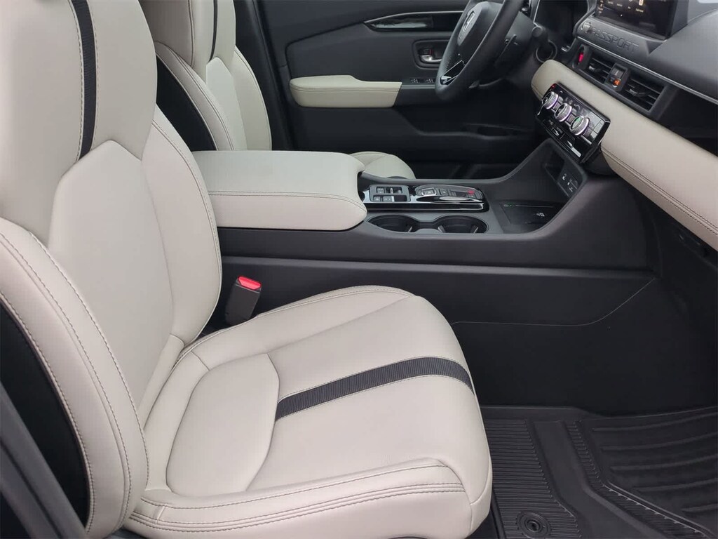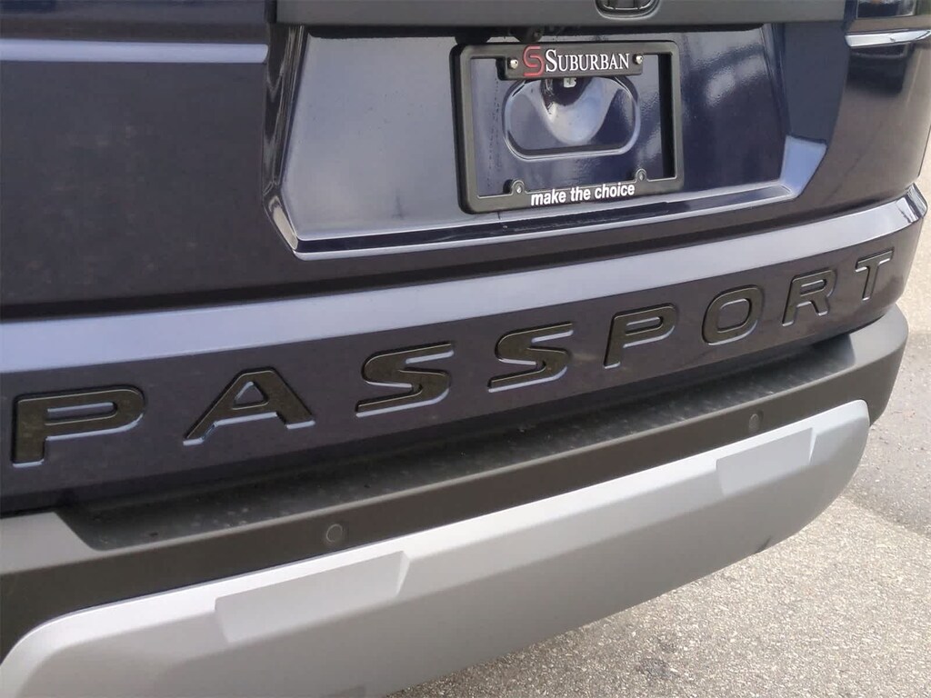 4-Wheel Disc Brakes, 9 Speakers, ABS brakes, Adaptive Cruise Control: Adaptive Cruise Control (ACC) with Low-Speed Follow, Air Conditioning, Alloy wheels, Apple CarPlay/Android Auto, Auto High-beam Headlights, Auto-dimming Rear-View mirror, Automatic temperature control, Blind Spot Information (BSI) System warning, Brake assist, Compass, Delay-off headlights, Driver door bin, Driver vanity mirror, Drivers Seat Mounted Armrest, Dual front impact airbags, Dual front side impact airbags, Electronic Stability Control, Emergency communication system: HondaLink, Exterior Parking Camera Rear, Four wheel independent suspension, Front anti-roll bar, Front Bucket Seats, Front Center Armrest, Front dual zone A/C, Front reading lights, Fully automatic headlights, Heated door mirrors, Heated Front Bucket Seats, Heated front seats, HVAC memory, Illuminated entry, Knee airbag, Lane departure: Lane Keeping Assist System (LKAS) active, Leather & Cloth Seat Trim, Leather steering wheel, Low tire pressure warning, Memory seat, Navigation system: Google Maps, Occupant sensing airbag, Outside temperature display, Overhead airbag, Overhead console, Panic alarm, Passenger door bin, Passenger seat mounted armrest, Passenger vanity mirror, Power door mirrors, Power driver seat, Power Liftgate, Power passenger seat, Power steering, Power windows, Radio data system, Radio: Audio System w/9 Speakers, Rear air conditioning, Rear anti-roll bar, Rear reading lights, Rear seat center armrest, Rear window defroster, Rear window wiper, Remote keyless entry, Security system, Speed control, Speed-sensing steering, Split folding rear seat, Spoiler, Steering wheel mounted audio controls, Tachometer, Telescoping steering wheel, Tilt steering wheel, Traction control, Trip computer, Variably intermittent wipers, and Wheels: 18 Shark Gray Alloy Bluetooth Backup Camera. Obsidian Blue Pearl 2026 Honda Passport RTL 10-Speed Automatic