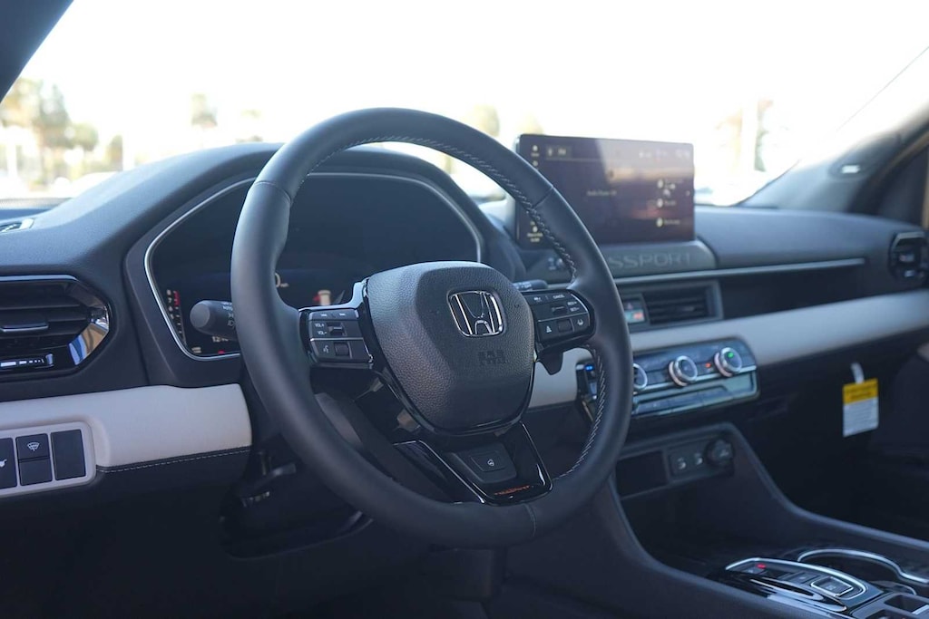 2026 Honda Passport TrailSport Elite 12 Speakers, 4-Wheel Disc Brakes, ABS brakes, Adaptive Cruise Control: Adaptive Cruise Control (ACC) with Low-Speed Follow, Air Conditioning, Alloy wheels, Apple CarPlay/Android Auto, Auto High-beam Headlights, Auto-dimming door mirrors, Auto-dimming Rear-View mirror, Automatic temperature control, Blind Spot Information (BSI) System warning, Brake assist, Compass, Delay-off headlights, Driver door bin, Driver vanity mirror, Drivers Seat Mounted Armrest, Dual front impact airbags, Dual front side impact airbags, Electronic Stability Control, Emergency communication system: HondaLink, Exterior Parking Camera Rear, Four wheel independent suspension, Front anti-roll bar, Front Bucket Seats, Front Center Armrest, Front dual zone A/C, Front fog lights, Front reading lights, Fully automatic headlights, Heated & Ventilated Front Bucket Seats, Heated door mirrors, Heated front seats, Heated rear seats, Heated steering wheel, HVAC memory, Illuminated entry, Knee airbag, Lane departure: Lane Keeping Assist System (LKAS) active, Leather steering wheel, Low tire pressure warning, Memory seat, Navigation system: Google Maps, Occupant sensing airbag, Outside temperature display, Overhead airbag, Overhead console, Panic alarm, Passenger door bin, Passenger seat mounted armrest, Passenger vanity mirror, Perforated Leather Seat Trim, Power door mirrors, Power driver seat, Power Liftgate, Power moonroof, Power passenger seat, Power steering, Power windows, Radio data system, Radio: Bose Premium Sound System w/12 Speakers, Rain sensing wipers, Rear air conditioning, Rear anti-roll bar, Rear reading lights, Rear seat center armrest, Rear window defroster, Rear window wiper, Remote keyless entry, Security system, Speed control, Speed-sensing steering, Split folding rear seat, Spoiler, Steering wheel mounted audio controls, Tachometer, Telescoping steering wheel, Tilt steering wheel, Traction control, Trip computer, Turn signal indicator mirrors, Variably intermittent wipers, Ventilated front seats, Wheels: 18 Berlina Black Machine Face Alloy.