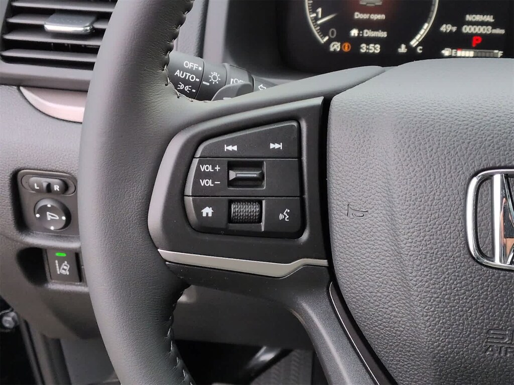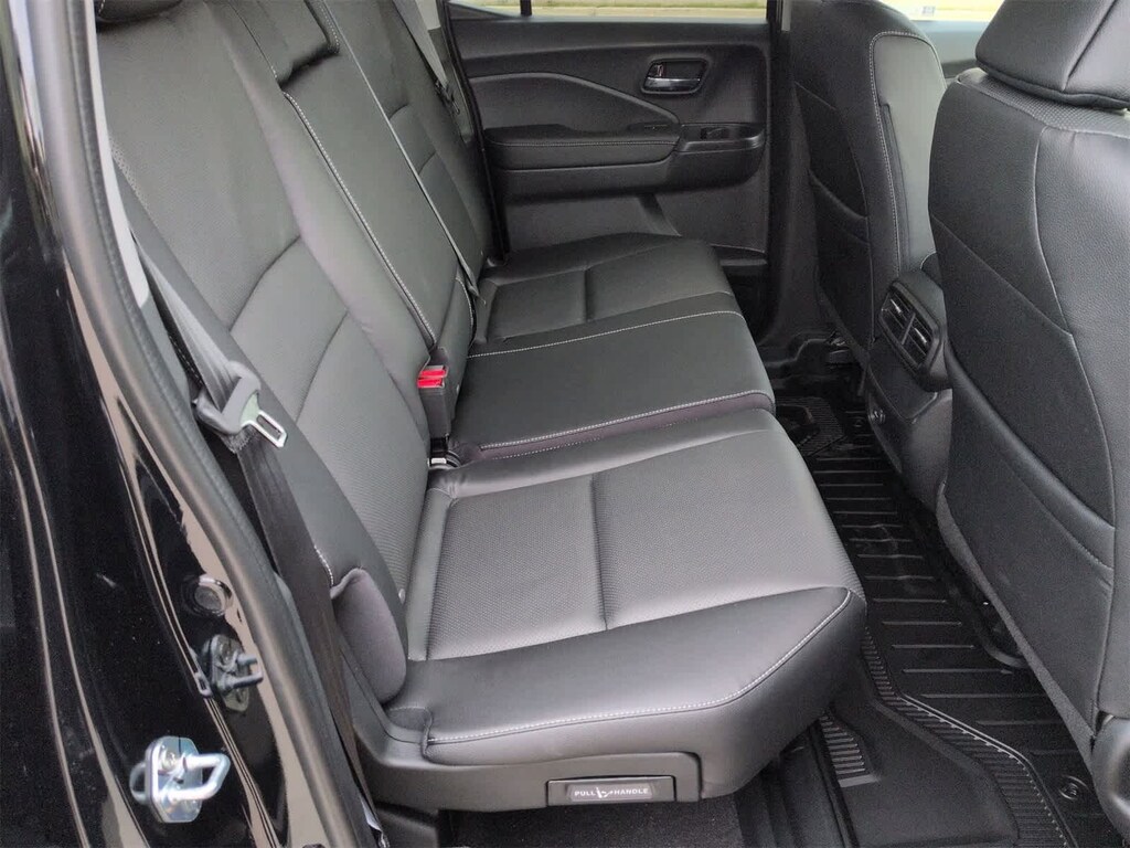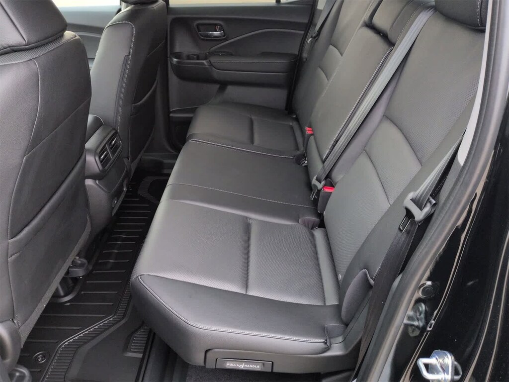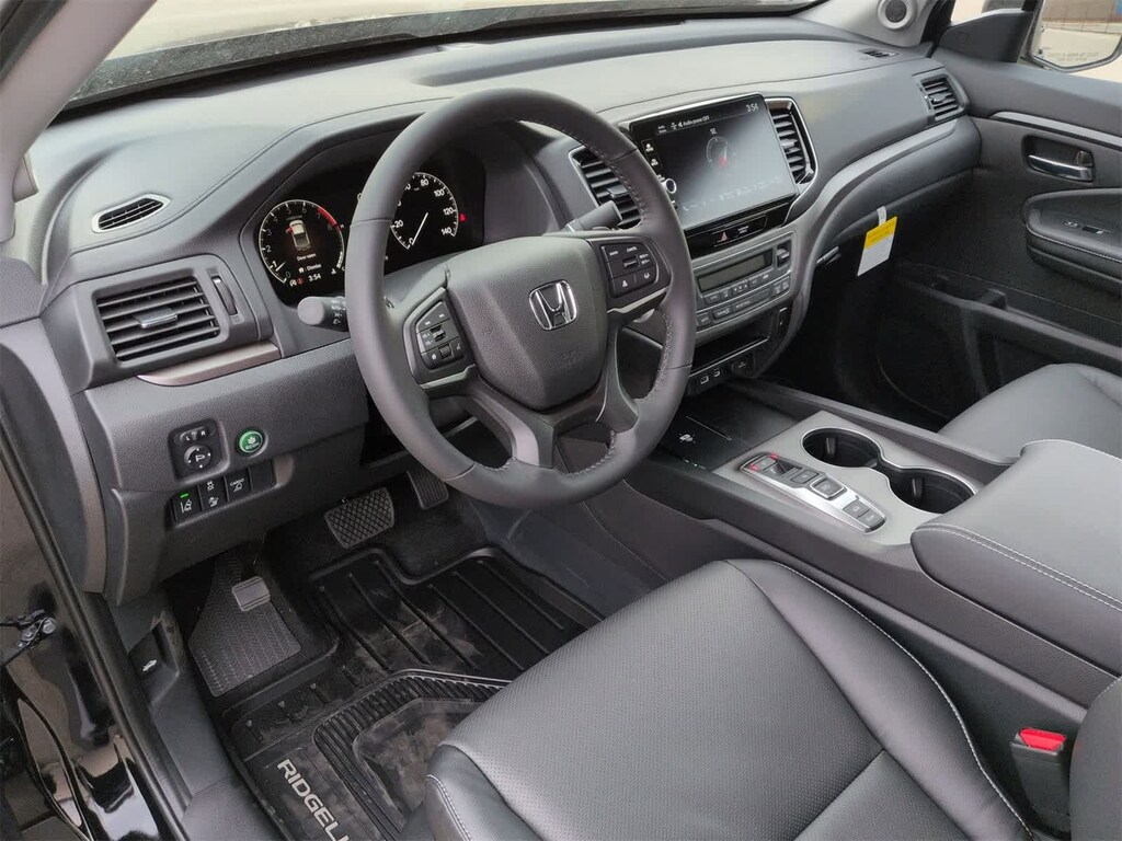 Black Leather, 4-Wheel Disc Brakes, 4.33 Axle Ratio, 7 Speakers, ABS brakes, Air Conditioning, Alloy wheels, AM/FM radio: SiriusXM, Auto-dimming Rear-View mirror, Automatic temperature control, Blind Spot Information (BSI) System warning, Bluetoothî Hands-Free Link, Brake assist, Bumpers: body-color, Compass, Delay-off headlights, Driver door bin, Driver vanity mirror, Drivers Seat Mounted Armrest, Dual front impact airbags, Dual front side impact airbags, Electronic Stability Control, Emergency communication system: HondaLink Assist, Exterior Parking Camera Rear, Four wheel independent suspension, Front anti-roll bar, Front Bucket Seats, Front dual zone A/C, Front fog lights, Front reading lights, Fully automatic headlights, Garage door transmitter: HomeLink, Heated door mirrors, Heated Front Bucket Seats, Heated front seats, Illuminated entry, Leather Seat Trim, Leather steering wheel, Low tire pressure warning, Memory seat, Occupant sensing airbag, Outside temperature display, Overhead airbag, Overhead console, Panic alarm, Passenger door bin, Passenger seat mounted armrest, Passenger vanity mirror, Power door mirrors, Power driver seat, Power moonroof, Power passenger seat, Power steering, Power windows, Radio data system, Radio: 215-Watt Audio System with 7 Speakers, Rear air conditioning, Rear anti-roll bar, Rear reading lights, Rear seat center armrest, Rear step bumper, Rear window defroster, Remote keyless entry, Security system, SiriusXM, Speed control, Speed-sensing steering, Split folding rear seat, Steering wheel mounted audio controls, Tachometer, Telescoping steering wheel, Tilt steering wheel, Traction control, Trip computer, Turn signal indicator mirrors, Variably intermittent wipers, and Wheels: 18 Pewter Gray Machine-Finished Alloy Bluetooth Backup Camera. Crystal Black Pearl 2026 Honda Ridgeline RTL 9-Speed Automatic Black Leather.