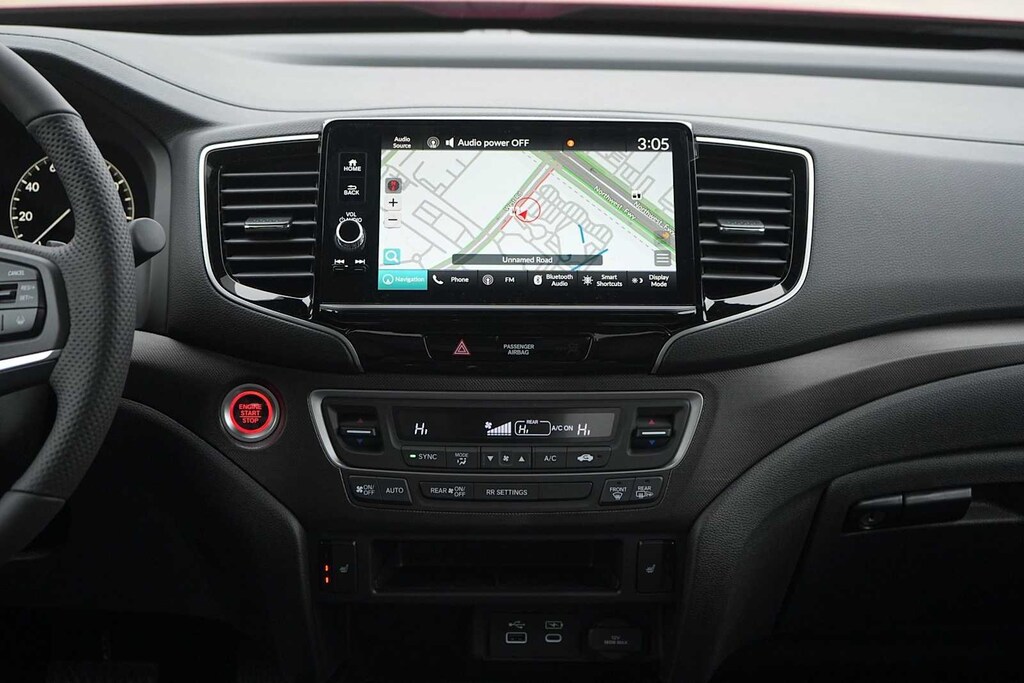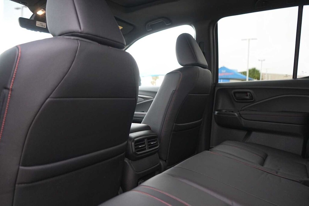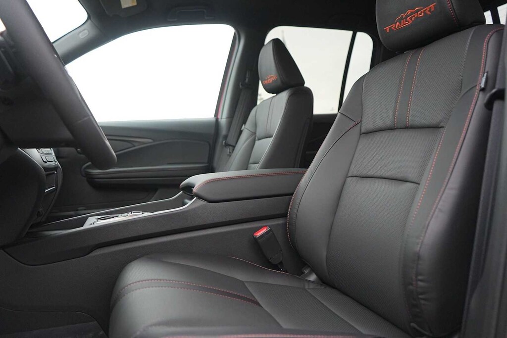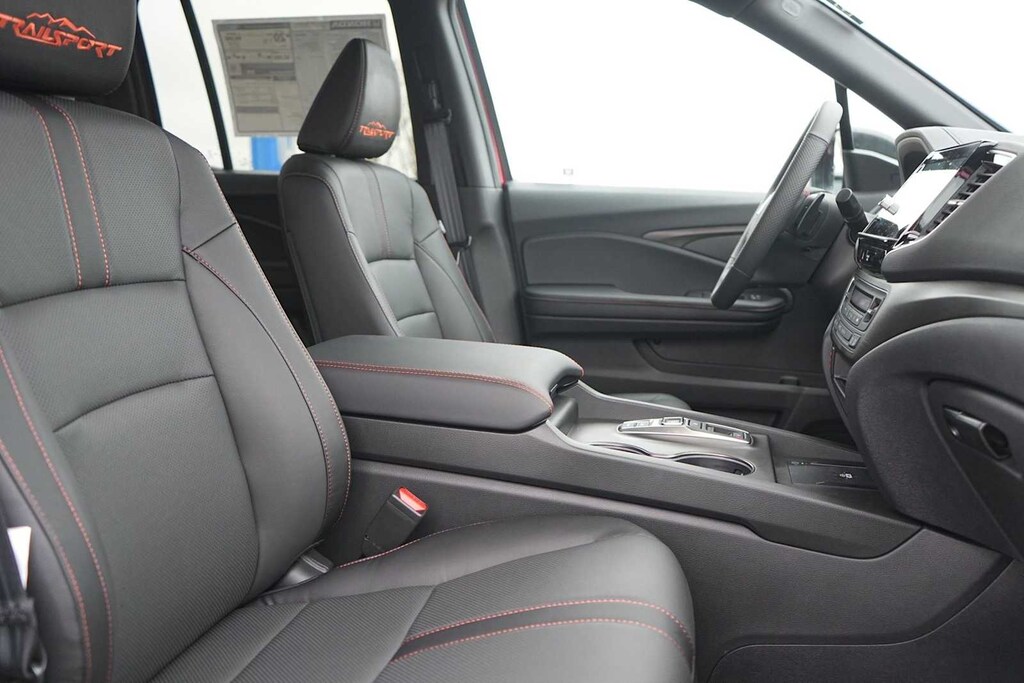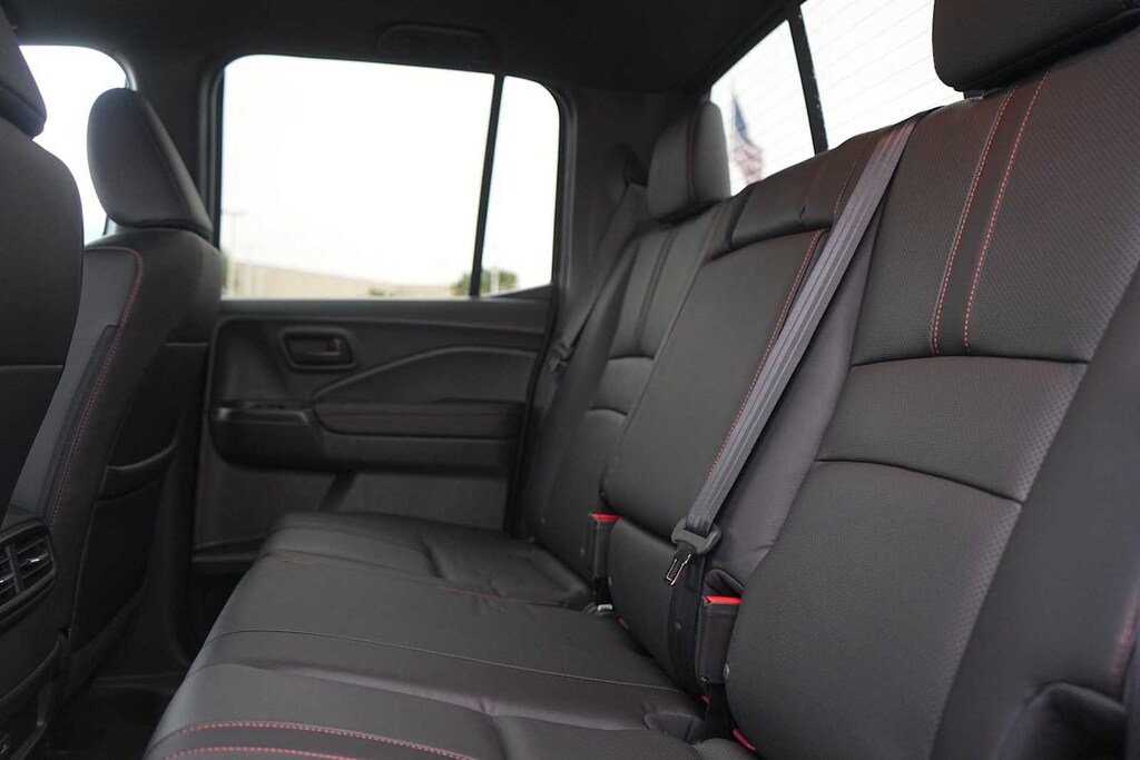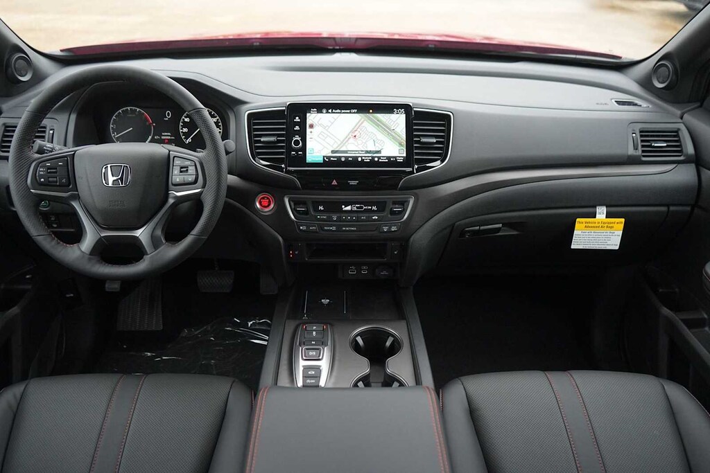 2026 Honda Ridgeline TrailSport+ Black Leather, 4-Wheel Disc Brakes, 4.33 Axle Ratio, 7 Speakers, ABS brakes, Air Conditioning, Alloy wheels, AM/FM radio: SiriusXM, Auto-dimming Rear-View mirror, Automatic temperature control, Blind Spot Information (BSI) System warning, Bluetoothî Hands-Free Link, Brake assist, Bumpers: body-color, Compass, Delay-off headlights, Driver door bin, Driver vanity mirror, Drivers Seat Mounted Armrest, Dual front impact airbags, Dual front side impact airbags, Electronic Stability Control, Emergency communication system: HondaLink Assist, Exterior Parking Camera Rear, Four wheel independent suspension, Front anti-roll bar, Front Bucket Seats, Front dual zone A/C, Front fog lights, Front reading lights, Fully automatic headlights, Garage door transmitter: HomeLink, Heated door mirrors, Heated Front Bucket Seats, Heated front seats, Heated steering wheel, Honda Satellite-Linked Navigation System, Illuminated entry, Leather Seat Trim, Leather steering wheel, Low tire pressure warning, Memory seat, Navigation system: Honda Satellite-Linked Navigation System, Occupant sensing airbag, Outside temperature display, Overhead airbag, Overhead console, Panic alarm, Passenger door bin, Passenger seat mounted armrest, Passenger vanity mirror, Power door mirrors, Power driver seat, Power moonroof, Power passenger seat, Power steering, Power windows, Radio data system, Radio: 215-Watt Audio System with 7 Speakers, Rear air conditioning, Rear anti-roll bar, Rear reading lights, Rear seat center armrest, Rear step bumper, Rear window defroster, Remote keyless entry, Security system, SiriusXM, Speed control, Speed-sensing steering, Split folding rear seat, Steering wheel mounted audio controls, Tachometer, Telescoping steering wheel, Tilt steering wheel, Traction control, Trip computer, Turn signal indicator mirrors, Variably intermittent wipers, Wheels: 18 HPD Black Alloy, Black Leather.
