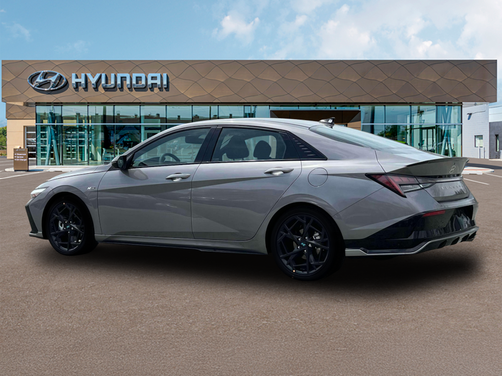 Our 2025 Hyundai Elantra N Line Sedan adds dynamic performance to its sophisticated good looks in Fluid Metal! Powered by a TurboCharged 1.6 Liter 4 Cylinder delivering 201hp to a paddle-shifted 7 Speed Dual-clutch Automatic transmission that brings a bold boost of excitement to everyday driving. You can also take advantage of a sporty suspension for spirited cornering, and this Front Wheel Drive sedan returns nearly 35mpg on the highway. Elevated Elantra style comes into play with LED lighting, aggressive N Line bodywork, alloy wheels, twin chrome exhaust outlets, and a hands-free trunk for premium practicality.