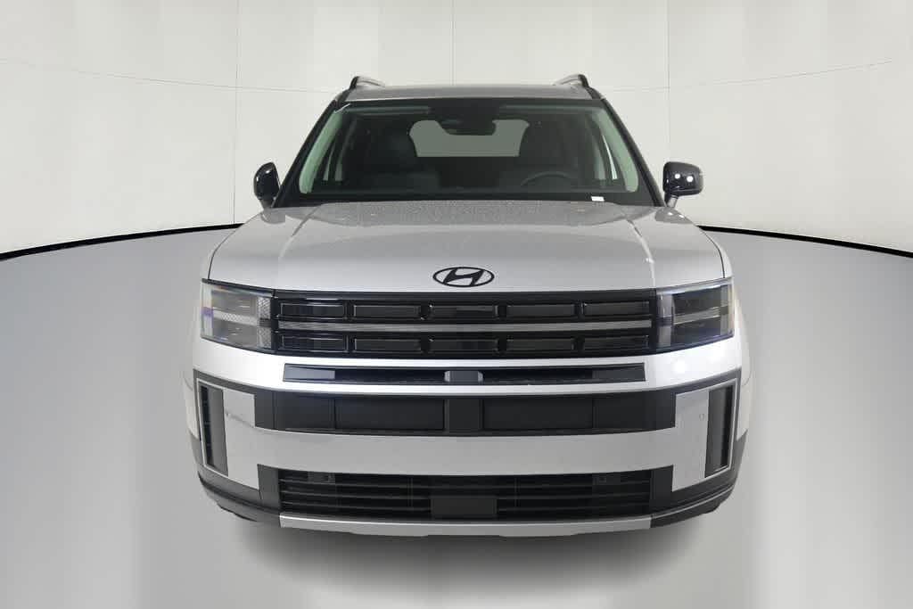 This Santa Fe is well equipped with Option Group 01, AWD, Black Artificial Leather, 3rd row seats: bench, 4-Wheel Disc Brakes, 6 Speakers, ABS brakes, Air Conditioning, All Season Fitted Liners, Alloy wheels, AM/FM radio: SiriusXM, Apple CarPlay & Android Auto, Auto High-beam Headlights, Automatic temperature control, Brake assist, Bumpers: body-color, Cargo Cover, Cargo Net, Cargo Organizer, Cargo Tray, Delay-off headlights, Driver door bin, Driver vanity mirror, Dual front impact airbags, Dual front side impact airbags, Electronic Stability Control, Emergency communication system, Exterior Parking Camera Rear, First Aid Kit, Four wheel independent suspension, Front anti-roll bar, Front Bucket Seats, Front Center Armrest, Front dual zone A/C, Front reading lights, Fully automatic headlights, H-Tex Leatherette Seat Trim, Heated door mirrors, Heated Front Bucket Seats, Heated front seats, Illuminated entry, Knee airbag, Leather steering wheel, Low tire pressure warning, Navigation System, Occupant sensing airbag, Outside temperature display, Overhead airbag, Overhead console, Panic alarm, Passenger door bin, Passenger vanity mirror, Power door mirrors, Power driver seat, Power Liftgate, Power moonroof, Power steering, Power windows, Radio: AM/FM/HD Display Audio, Rear anti-roll bar, Rear seat center armrest, Rear side impact airbag, Rear window defroster, Rear window wiper, Remote keyless entry, Roadside Assistance Kit, Security system, Speed control, Speed-sensing steering, Split folding rear seat, Spoiler, Steering wheel mounted audio controls, Tachometer, Telescoping steering wheel, Tilt steering wheel, Traction control, Trip computer, Turn signal indicator mirrors, Variably intermittent wipers, and Wheels: 18" x 7.5J Dark Alloy.