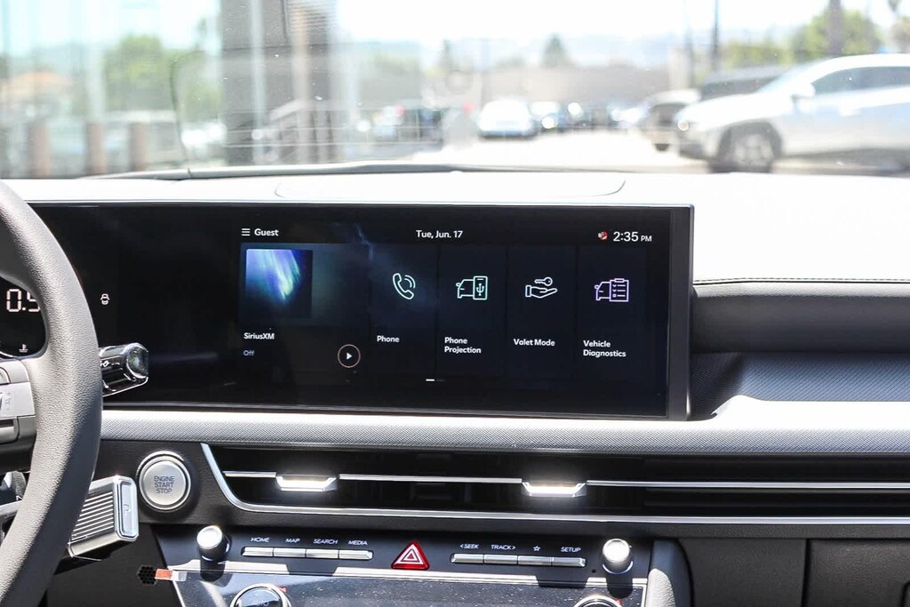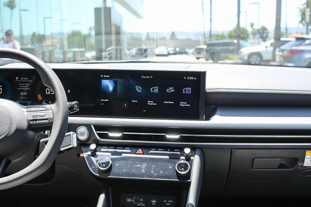 This vehicle has Option Group 01, Gray Cloth, 17 x 7.0J Aluminum Alloy Wheels, 4-Wheel Disc Brakes, 6 Speakers, ABS brakes, Air Conditioning, Alloy wheels, AM/FM radio: SiriusXM, Apple CarPlay & Android Auto, Auto High-beam Headlights, Automatic temperature control, Brake assist, Bumpers: body-color, Cargo Net, Cargo Side Bins, Cargo Tray, Carpeted Floor Mats, Cloth Seating Surfaces, Delay-off headlights, Driver door bin, Driver vanity mirror, Dual front impact airbags, Dual front side impact airbags, Electronic Stability Control, Emergency communication system: Bluelink+, Exterior Parking Camera Rear, First Aid Kit, Four wheel independent suspension, Front anti-roll bar, Front Bucket Seats, Front Center Armrest, Front dual zone A/C, Front reading lights, Fully automatic headlights, Heated door mirrors, Heated Front Bucket Seats, Heated front seats, Illuminated entry, Knee airbag, Low tire pressure warning, Occupant sensing airbag, Outside temperature display, Overhead airbag, Overhead console, Panic alarm, Passenger door bin, Passenger vanity mirror, Power door mirrors, Power driver seat, Power steering, Power windows, Radio data system, Radio: AM/FM/HD/SiriusXM, Rear anti-roll bar, Rear seat center armrest, Rear side impact airbag, Rear window defroster, Remote keyless entry, Security system, Severe Weather Kit, Speed control, Speed-sensing steering, Speed-Sensitive Wipers, Split folding rear seat, Steering wheel mounted audio controls, Tachometer, Telescoping steering wheel, Tilt steering wheel, Traction control, Trip computer, Variably intermittent wipers, and Wheel Locks.