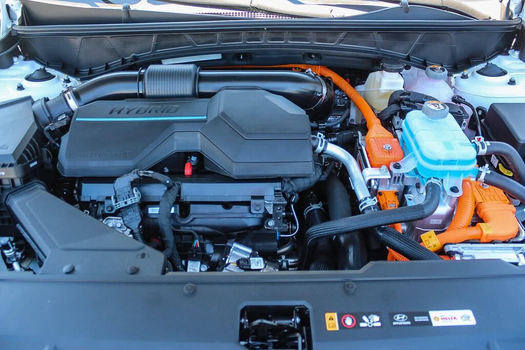 1.6L I4 DGI Hybrid Turbocharged DOHC 16V LEV3-SULEV30, 19 Alloy Wheels, 4-Wheel Disc Brakes, 8 Speakers, ABS brakes, Air Conditioning, Alloy wheels, AM/FM radio: SiriusXM, Apple CarPlay & Android Auto, Auto High-beam Headlights, Auto-dimming Rear-View mirror, Automatic temperature control, Brake assist, Bumpers: body-color, Cargo Net, Cargo Tray, Carpeted Floor Mats, Delay-off headlights, Driver door bin, Driver vanity mirror, Dual front impact airbags, Dual front side impact airbags, Electronic Stability Control, Emergency communication system: Bluelink+, First Aid Kit, Four wheel independent suspension, Front anti-roll bar, Front Bucket Seats, Front Center Armrest, Front dual zone A/C, Front reading lights, Fully automatic headlights, Garage door transmitter: HomeLink, Heads-Up Display, Heated & Ventilated Front Bucket Seats, Heated door mirrors, Heated front seats, Heated rear seats, Heated steering wheel, Illuminated entry, Leather steering wheel, Leather-Trimmed Seat Trim, Low tire pressure warning, Memory seat, Mud Guards, Navigation System, Occupant sensing airbag, Option Group 01, Outside temperature display, Overhead airbag, Overhead console, Panic alarm, Passenger door bin, Passenger vanity mirror, Power door mirrors, Power driver seat, Power Liftgate, Power moonroof, Power passenger seat, Power steering, Power windows, Radio data system, Radio: Bose Premium w/AM/FM/HD Audio System, Rain sensing wipers, Rear anti-roll bar, Rear reading lights, Rear seat center armrest, Rear side impact airbag, Rear window defroster, Rear window wiper, Remote keyless entry, Roadside Assistance Kit, Security system, Speed control, Split folding rear seat, Spoiler, Steering wheel mounted audio controls, Tachometer, Telescoping steering wheel, Tilt steering wheel, Traction control, Trip computer, Turn signal indicator mirrors, Variably intermittent wipers, Ventilated front seats, 1.6L I4 DGI Hybrid Turbocharged DOHC 16V LEV3-SULEV30.