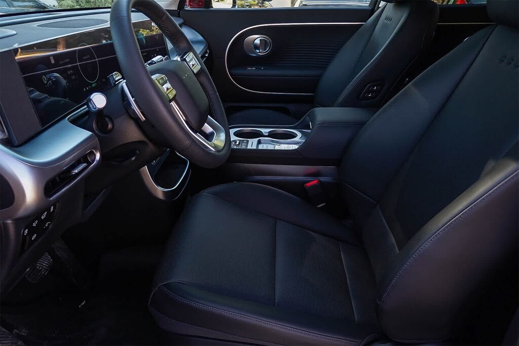 2026 Hyundai IONIQ 9 SEL 4dr SUV AWD (electric DD cyber gray and 2 tone light gray interior. ) This an early review having only 478 miles on it. Positives: *Quiet ride: Very hushed inside with little road noise, tire noise or any squeaks or rattles. Smooth over all road bumps w/o lateral or vertical bobbing as some professionals have reported. I did notice mine has 20' Kumho's vs 21s on higher trims that were reviewed by most pros. *Awesome drivetrain: Adaptive cruise is very precise and lane centering is steady with no weaving. It will even change lanes which I was surprised it did despite not being a hands off system. Aerodynamics are yielding an average of 3.2mi/kw since taking ownership. I drive 0-10 MPH over speed limits and using ECO mode or 1 pedal driving when alone but switch to none or level 1 when others in the car to increase smoothness. My wife prefers zero regen and it glides on so much that I sometimes wonder if I should let it stay that way. Normal and sport mode really boosts accelerator response and sport definitely tightens the steering response. *Luxury comfort: 1st row comfort outstanding for almost all body types. Super soft headrest is a welcome surprise. Kia EV9 has a mesh headrest equally soft and comfortable. I enjoy having some buttons for climate and media features but enjoy that the screen or voice commands can do just about anything the buttons do. EV9 has similar layout and was a close comparison. Tesla's all screen modality does not work for me but for others it is fantastic - to each their own. 2nd row bench again is what works for my family as we are numerous and have grown adult children. Foot rests in higher trims seem small and unlikely to allow full leg extension as it would squeeze legs against the set in front. and gimmicky except for small kids; mine are all adults owning their own cars. Sliding the seat a bit forward gives decent 3rd row space, but my wife and I typically keep 3rd row down for extra storage. *Other likes: Hidden rear wiper increases vision; Headlights shine nicely at night; rear pixelation and lights across the hatch, frunk to keep charging cables and adapters. I have home charger and as this is the 2nd EV ['21 ID4 Pro S] we easily swap cars to use it. NACS = CCS1 Adaptor works flawlessly and app is fantastic, giving current charge, time to full, charge rate and more. Have not yet used a public charger but Hyundai has an app that apparently across platforms. Areas to improve: Harmon Kardon stereo not very base-y so it requires a bass boost done manually. The gray interior scuffs easily. Kumho tires not rated as high as Hankooks which come on higher trims but these are very quiet. Dealers had no hitch available and other places do not yet list the Ioniq 9 so will need to wait for the market to catch up. 303 HP is good but not as powerful as upper trims, EV9 GT or Caddy Vistiq. Tesla and Rivian are on another tier relative to power. EV9 clearly more boxy and traditional shape so that is a preference but I agree it is also a beautiful car. Ioniq 9 could use adaptive dampers but maybe that will be a Genesis option. A household power outlet seems like a miss - we bought a converter to plug into the 12 volt outlet - who uses these old 'cigarette lighter' outlets anymore! A second wireless charger would also help. Final thoughts on higher trims: Higher HP is a matter of taste but an excellent value as it loses very few range miles. It's the other features that lose value: they have memory seats which I would have liked but don't need as I expect to be the main driver. Window shades, never get used. Rear seat ventilation rarely needed as typically just 1-2 people in it. Mechanical 2nd and 3rd row very slow - I prefer doing it manually and get extra tilt feature on passenger side. We prefer bench seat vs losing it to captains chairs. Comfort is the same. We are tall and prefer to not have moon/sun roof to add more head room.