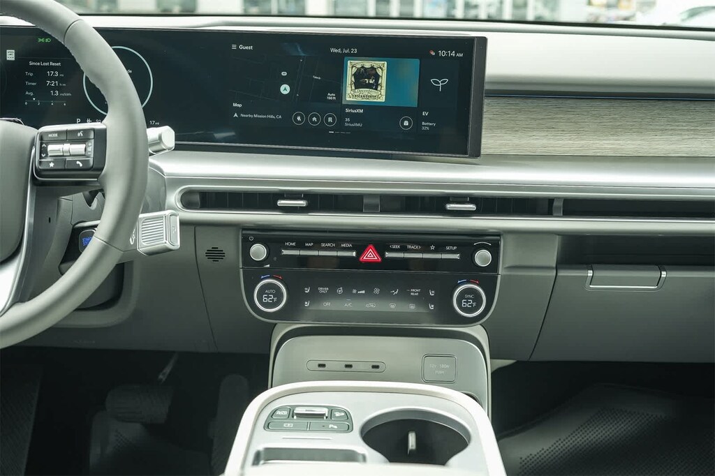2026 Hyundai IONIQ 9 SEL 4dr SUV AWD (electric DD cyber gray and 2 tone light gray interior. ) This an early review having only 478 miles on it. Positives: *Quiet ride: Very hushed inside with little road noise, tire noise or any squeaks or rattles. Smooth over all road bumps w/o lateral or vertical bobbing as some professionals have reported. I did notice mine has 20' Kumho's vs 21s on higher trims that were reviewed by most pros. *Awesome drivetrain: Adaptive cruise is very precise and lane centering is steady with no weaving. It will even change lanes which I was surprised it did despite not being a hands off system. Aerodynamics are yielding an average of 3.2mi/kw since taking ownership. I drive 0-10 MPH over speed limits and using ECO mode or 1 pedal driving when alone but switch to none or level 1 when others in the car to increase smoothness. My wife prefers zero regen and it glides on so much that I sometimes wonder if I should let it stay that way. Normal and sport mode really boosts accelerator response and sport definitely tightens the steering response. *Luxury comfort: 1st row comfort outstanding for almost all body types. Super soft headrest is a welcome surprise. Kia EV9 has a mesh headrest equally soft and comfortable. I enjoy having some buttons for climate and media features but enjoy that the screen or voice commands can do just about anything the buttons do. EV9 has similar layout and was a close comparison. Tesla's all screen modality does not work for me but for others it is fantastic - to each their own. 2nd row bench again is what works for my family as we are numerous and have grown adult children. Foot rests in higher trims seem small and unlikely to allow full leg extension as it would squeeze legs against the set in front. and gimmicky except for small kids; mine are all adults owning their own cars. Sliding the seat a bit forward gives decent 3rd row space, but my wife and I typically keep 3rd row down for extra storage. *Other likes: Hidden rear wiper increases vision; Headlights shine nicely at night; rear pixelation and lights across the hatch, frunk to keep charging cables and adapters. I have home charger and as this is the 2nd EV ['21 ID4 Pro S] we easily swap cars to use it. NACS = CCS1 Adaptor works flawlessly and app is fantastic, giving current charge, time to full, charge rate and more. Have not yet used a public charger but Hyundai has an app that apparently across platforms. Areas to improve: Harmon Kardon stereo not very base-y so it requires a bass boost done manually. The gray interior scuffs easily. Kumho tires not rated as high as Hankooks which come on higher trims but these are very quiet. Dealers had no hitch available and other places do not yet list the Ioniq 9 so will need to wait for the market to catch up. 303 HP is good but not as powerful as upper trims, EV9 GT or Caddy Vistiq. Tesla and Rivian are on another tier relative to power. EV9 clearly more boxy and traditional shape so that is a preference but I agree it is also a beautiful car. Ioniq 9 could use adaptive dampers but maybe that will be a Genesis option. A household power outlet seems like a miss - we bought a converter to plug into the 12 volt outlet - who uses these old 'cigarette lighter' outlets anymore! A second wireless charger would also help. Final thoughts on higher trims: Higher HP is a matter of taste but an excellent value as it loses very few range miles. It's the other features that lose value: they have memory seats which I would have liked but don't need as I expect to be the main driver. Window shades, never get used. Rear seat ventilation rarely needed as typically just 1-2 people in it. Mechanical 2nd and 3rd row very slow - I prefer doing it manually and get extra tilt feature on passenger side. We prefer bench seat vs losing it to captains chairs. Comfort is the same. We are tall and prefer to not have moon/sun roof to add more head room.