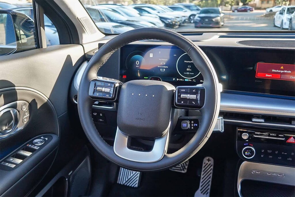 2026 Hyundai IONIQ 9 SEL 4dr SUV AWD (electric DD cyber gray and 2 tone light gray interior. ) This an early review having only 478 miles on it. Positives: *Quiet ride: Very hushed inside with little road noise, tire noise or any squeaks or rattles. Smooth over all road bumps w/o lateral or vertical bobbing as some professionals have reported. I did notice mine has 20' Kumho's vs 21s on higher trims that were reviewed by most pros. *Awesome drivetrain: Adaptive cruise is very precise and lane centering is steady with no weaving. It will even change lanes which I was surprised it did despite not being a hands off system. Aerodynamics are yielding an average of 3.2mi/kw since taking ownership. I drive 0-10 MPH over speed limits and using ECO mode or 1 pedal driving when alone but switch to none or level 1 when others in the car to increase smoothness. My wife prefers zero regen and it glides on so much that I sometimes wonder if I should let it stay that way. Normal and sport mode really boosts accelerator response and sport definitely tightens the steering response. *Luxury comfort: 1st row comfort outstanding for almost all body types. Super soft headrest is a welcome surprise. Kia EV9 has a mesh headrest equally soft and comfortable. I enjoy having some buttons for climate and media features but enjoy that the screen or voice commands can do just about anything the buttons do. EV9 has similar layout and was a close comparison. Tesla's all screen modality does not work for me but for others it is fantastic - to each their own. 2nd row bench again is what works for my family as we are numerous and have grown adult children. Foot rests in higher trims seem small and unlikely to allow full leg extension as it would squeeze legs against the set in front. and gimmicky except for small kids; mine are all adults owning their own cars. Sliding the seat a bit forward gives decent 3rd row space, but my wife and I typically keep 3rd row down for extra storage. *Other likes: Hidden rear wiper increases vision; Headlights shine nicely at night; rear pixelation and lights across the hatch, frunk to keep charging cables and adapters. I have home charger and as this is the 2nd EV ['21 ID4 Pro S] we easily swap cars to use it. NACS = CCS1 Adaptor works flawlessly and app is fantastic, giving current charge, time to full, charge rate and more. Have not yet used a public charger but Hyundai has an app that apparently across platforms. Areas to improve: Harmon Kardon stereo not very base-y so it requires a bass boost done manually. The gray interior scuffs easily. Kumho tires not rated as high as Hankooks which come on higher trims but these are very quiet. Dealers had no hitch available and other places do not yet list the Ioniq 9 so will need to wait for the market to catch up. 303 HP is good but not as powerful as upper trims, EV9 GT or Caddy Vistiq. Tesla and Rivian are on another tier relative to power. EV9 clearly more boxy and traditional shape so that is a preference but I agree it is also a beautiful car. Ioniq 9 could use adaptive dampers but maybe that will be a Genesis option. A household power outlet seems like a miss - we bought a converter to plug into the 12 volt outlet - who uses these old 'cigarette lighter' outlets anymore! A second wireless charger would also help. Final thoughts on higher trims: Higher HP is a matter of taste but an excellent value as it loses very few range miles. It's the other features that lose value: they have memory seats which I would have liked but don't need as I expect to be the main driver. Window shades, never get used. Rear seat ventilation rarely needed as typically just 1-2 people in it. Mechanical 2nd and 3rd row very slow - I prefer doing it manually and get extra tilt feature on passenger side. We prefer bench seat vs losing it to captains chairs. Comfort is the same. We are tall and prefer to not have moon/sun roof to add more head room.