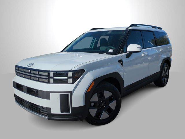 Serenity White 2026 Hyundai Santa Fe Hybrid SEL AWD 6-Speed Automatic with Shiftronic I4 I4, 18 x 7.5J Alloy Wheels, 3rd row seats: bench, 4-Wheel Disc Brakes, 6 Speakers, ABS brakes, Air Conditioning, Alloy wheels, AM/FM radio: SiriusXM, Apple CarPlay & Android Auto, Auto High-beam Headlights, Automatic temperature control, Brake assist, Bumpers: body-color, Cargo Cover/Screen, Cargo Net, Cargo Organizer, Cargo Tray, Carpeted Floor Mats, Delay-off headlights, Driver door bin, Driver vanity mirror, Dual front impact airbags, Dual front side impact airbags, Electronic Stability Control, Emergency communication system, Exterior Parking Camera Rear, First Aid Kit, Four wheel independent suspension, Front anti-roll bar, Front Bucket Seats, Front Center Armrest, Front dual zone A/C, Front reading lights, Fully automatic headlights, H-Tex Leatherette Seat Trim, Heated door mirrors, Heated Front Bucket Seats, Heated front seats, Illuminated entry, Knee airbag, Leather steering wheel, Low tire pressure warning, Occupant sensing airbag, Option Group 01, Outside temperature display, Overhead airbag, Overhead console, Panic alarm, Passenger door bin, Passenger vanity mirror, Power door mirrors, Power driver seat, Power Liftgate, Power steering, Power windows, Radio: AM/FM/HD Display Audio, Rear anti-roll bar, Rear seat center armrest, Rear side impact airbag, Rear window defroster, Rear window wiper, Remote keyless entry, Roadside Assistance Kit, Security system, Speed control, Speed-sensing steering, Split folding rear seat, Spoiler, Steering wheel mounted audio controls, Tachometer, Telescoping steering wheel, Tilt steering wheel, Traction control, Trip computer, Turn signal indicator mirrors, Variably intermittent wipers, I4.