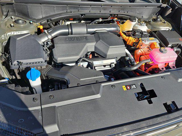 Rockwood Green 2026 Hyundai Santa Fe Hybrid SEL FWD 6-Speed Automatic with Shiftronic I4 I4, 18 x 7.5J Alloy Wheels, 3rd row seats: bench, 4-Wheel Disc Brakes, 6 Speakers, ABS brakes, Air Conditioning, Alloy wheels, AM/FM radio: SiriusXM, Apple CarPlay & Android Auto, Auto High-beam Headlights, Automatic temperature control, Brake assist, Bumpers: body-color, Cargo Blocks, Cargo Cover/Screen, Cargo Tray, Carpeted Floor Mats, Delay-off headlights, Driver door bin, Driver vanity mirror, Dual front impact airbags, Dual front side impact airbags, Electronic Stability Control, Emergency communication system, Exterior Parking Camera Rear, First Aid Kit, Four wheel independent suspension, Front anti-roll bar, Front Bucket Seats, Front Center Armrest, Front dual zone A/C, Front reading lights, Fully automatic headlights, H-Tex Leatherette Seat Trim, Heated door mirrors, Heated Front Bucket Seats, Heated front seats, Illuminated entry, Knee airbag, Leather steering wheel, Low tire pressure warning, Mudguards, Occupant sensing airbag, Option Group 01, Outside temperature display, Overhead airbag, Overhead console, Panic alarm, Passenger door bin, Passenger vanity mirror, Power door mirrors, Power driver seat, Power Liftgate, Power steering, Power windows, Radio: AM/FM/HD Display Audio, Rear anti-roll bar, Rear seat center armrest, Rear side impact airbag, Rear window defroster, Rear window wiper, Remote keyless entry, Security system, Speed control, Speed-sensing steering, Split folding rear seat, Spoiler, Steering wheel mounted audio controls, Tachometer, Telescoping steering wheel, Tilt steering wheel, Traction control, Trip computer, Turn signal indicator mirrors, Variably intermittent wipers, I4.